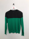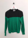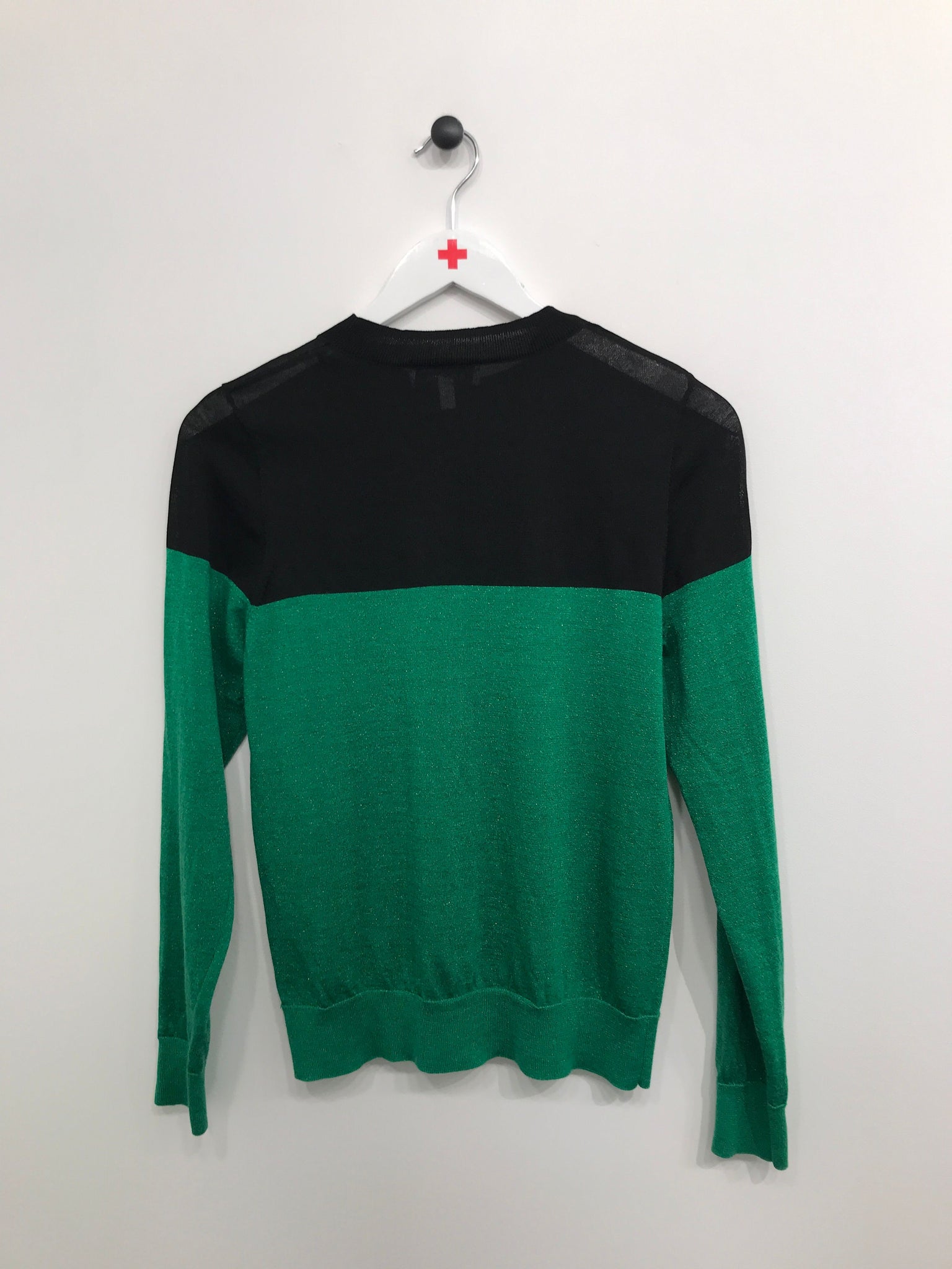 Pæn tofarvet strikbluse med rund hals og lange ærmer.