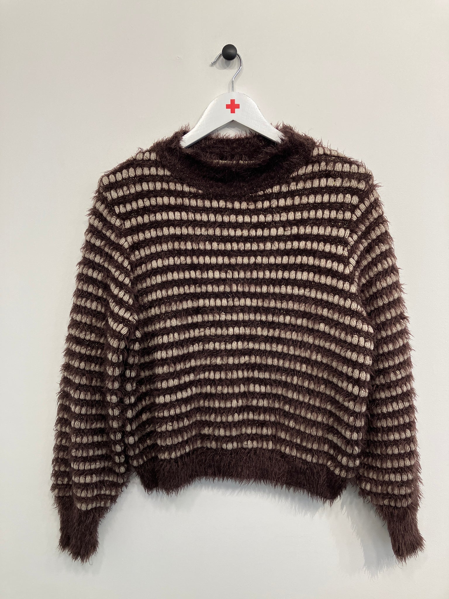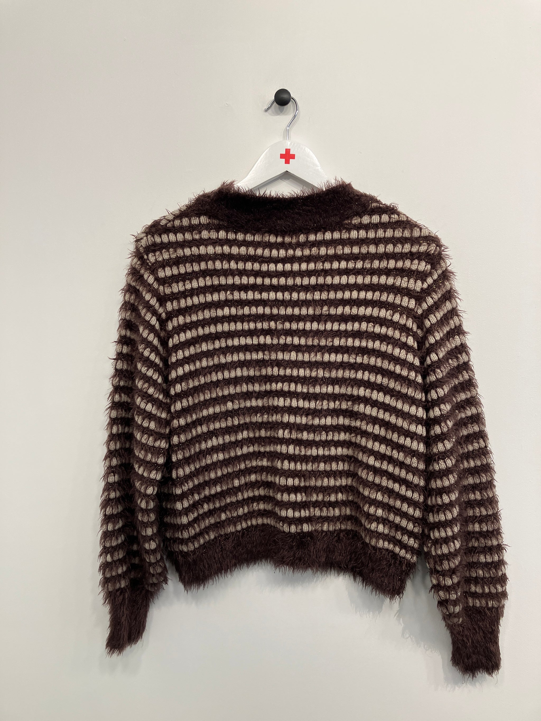 Lækker strik bluse hvor vaske mærket er klippet af.