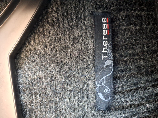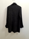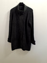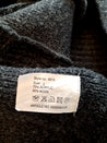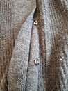 O452 Cardigan i kraftigt strik med ribmønster og høj krave. Materialet synes varmt og blødt. En trykknapper mangler.