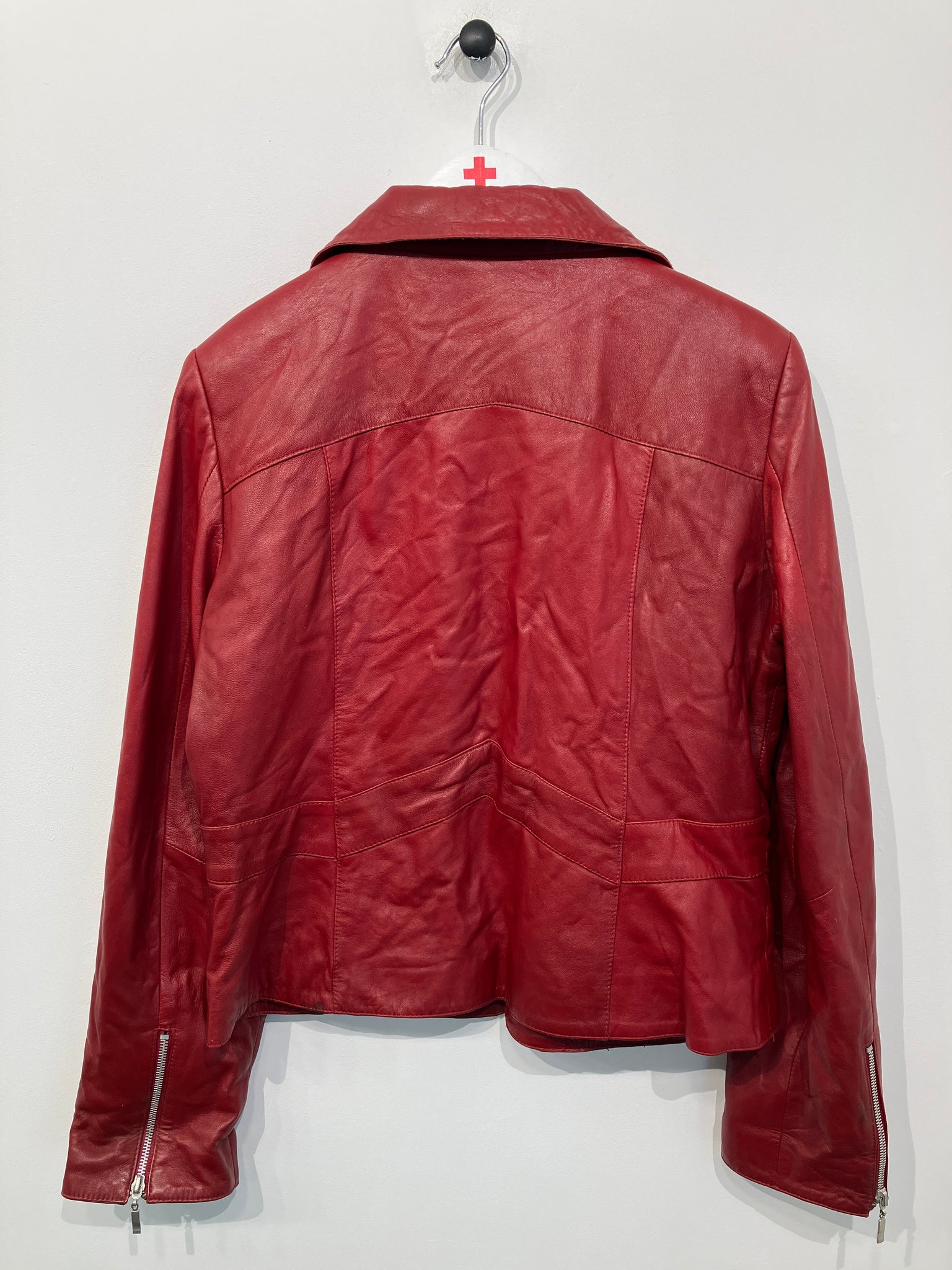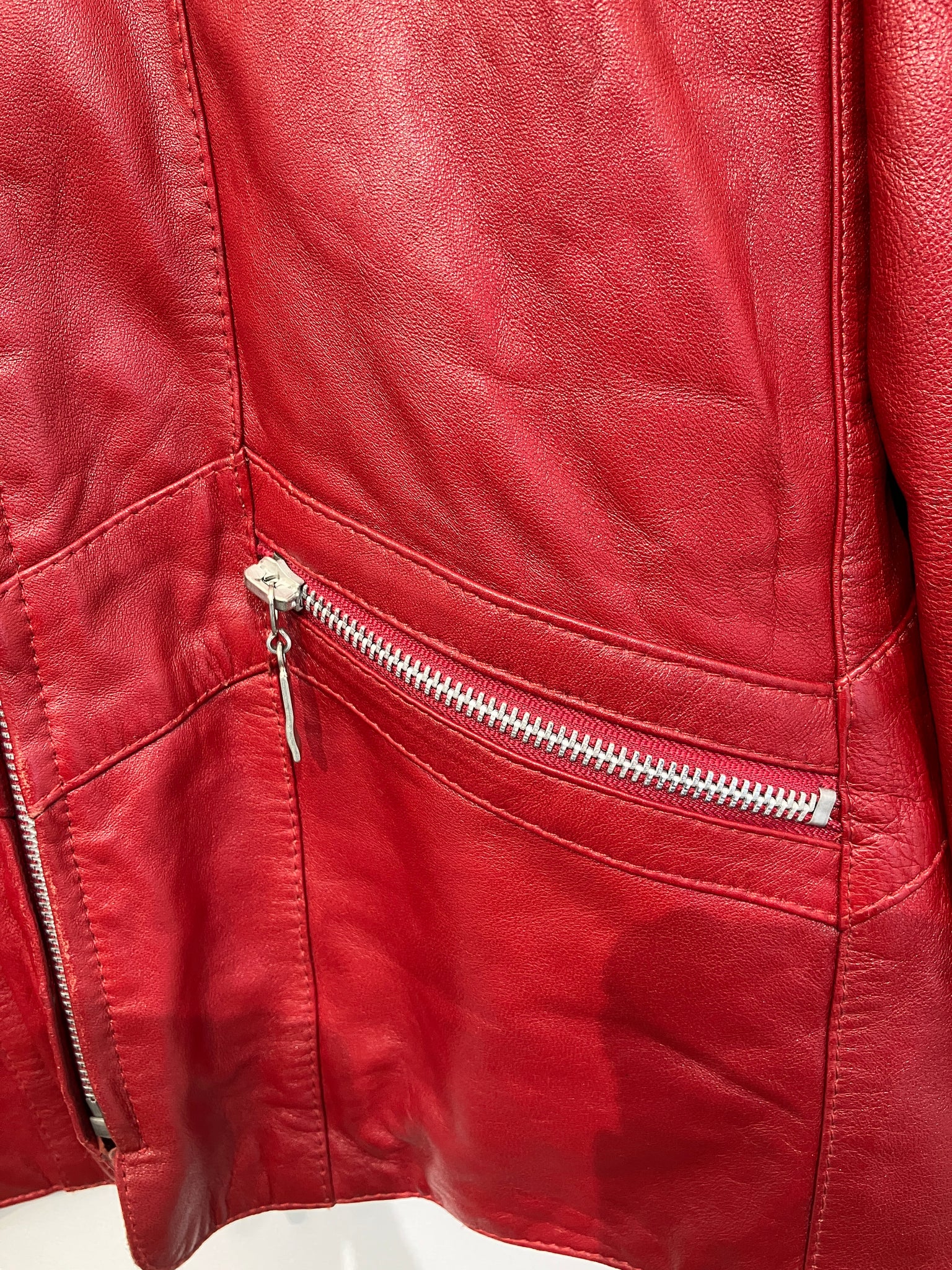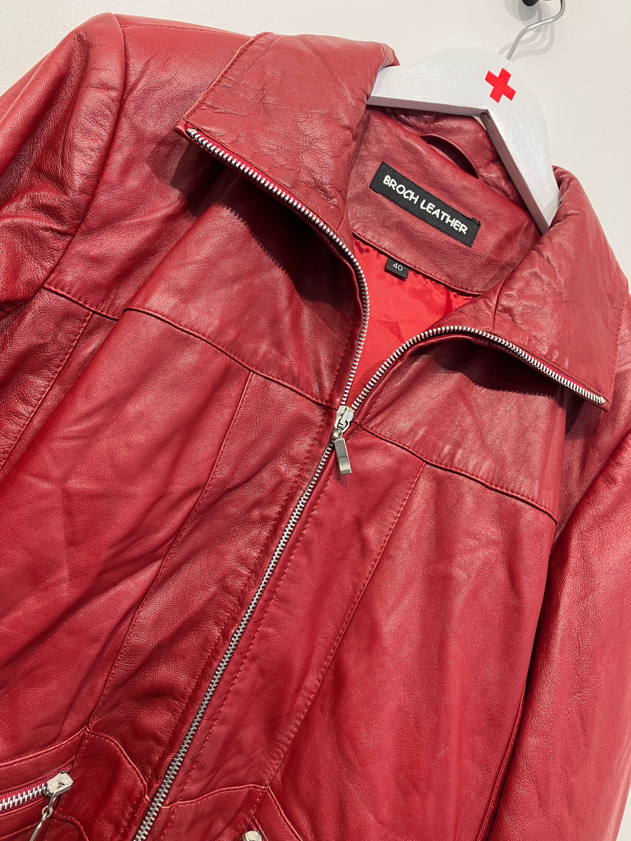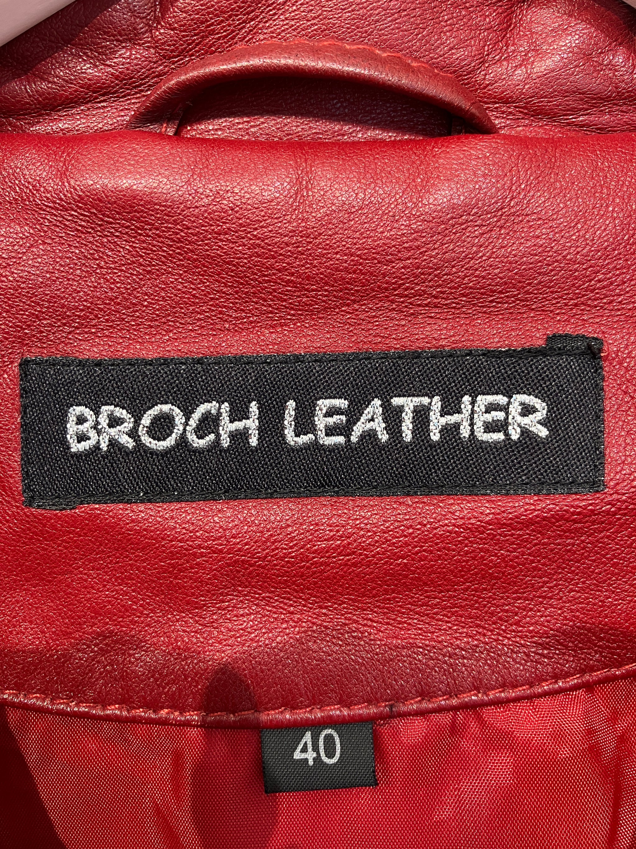 Flot Broch Leather jakke i skind med lynlåsdetaljer og stor krave.