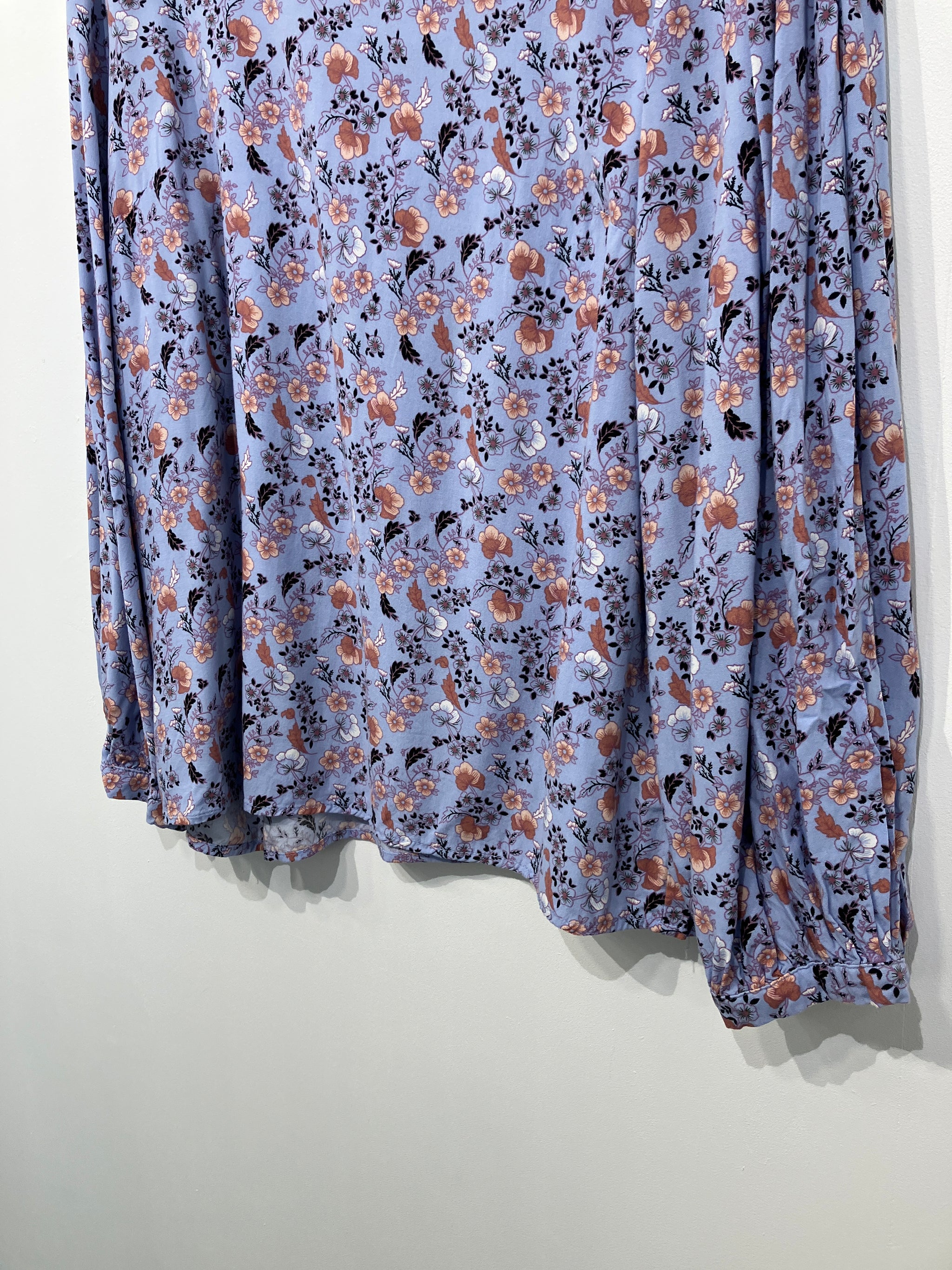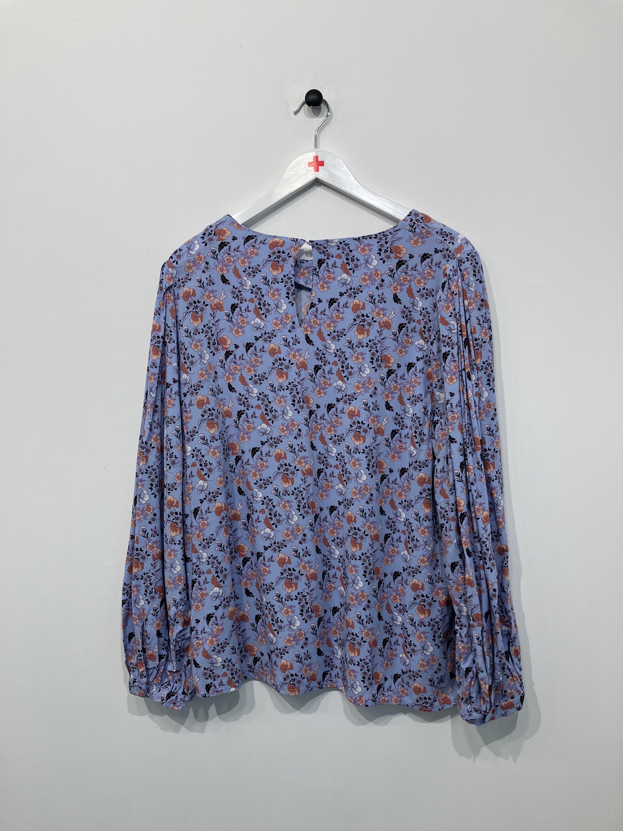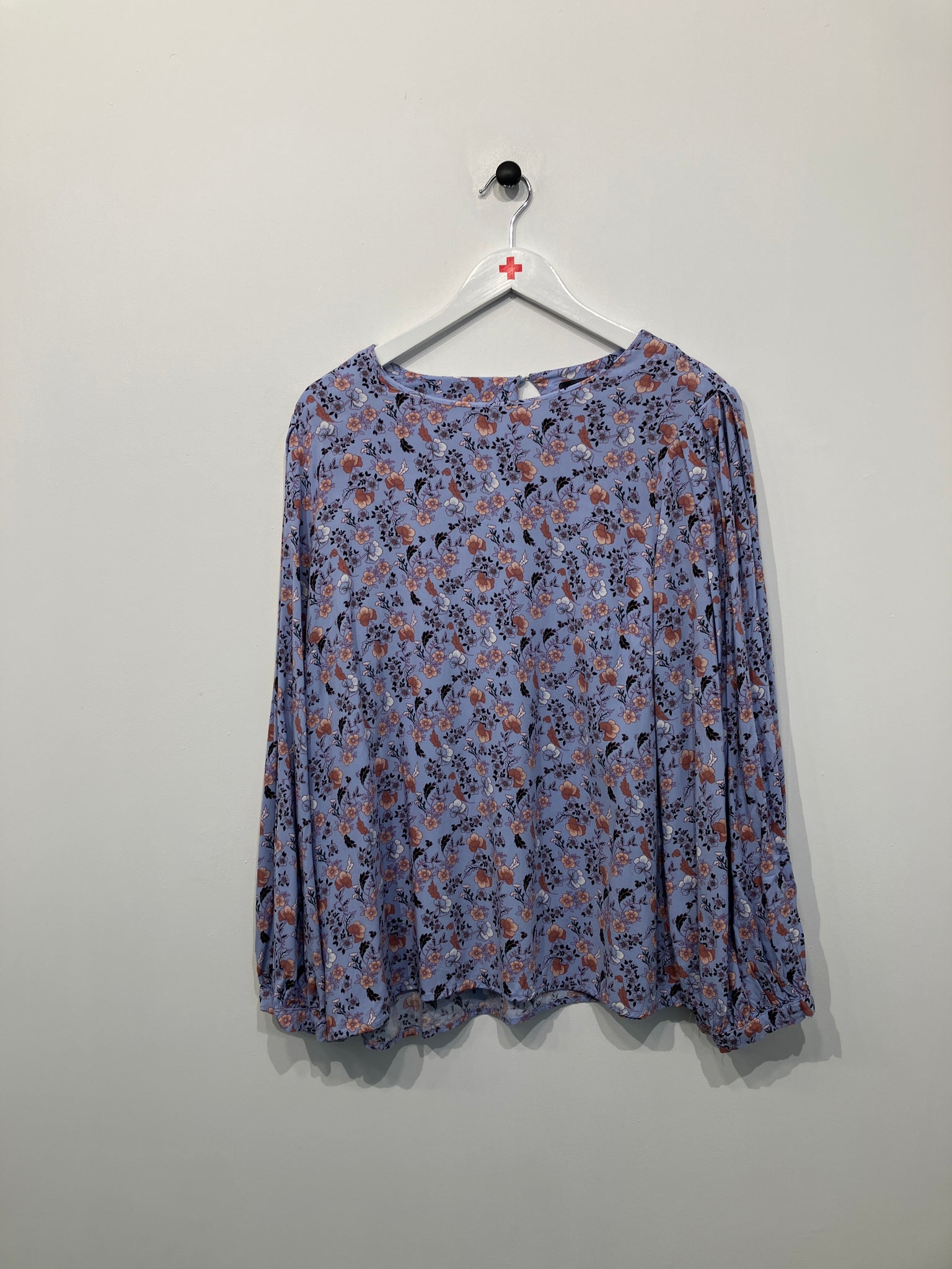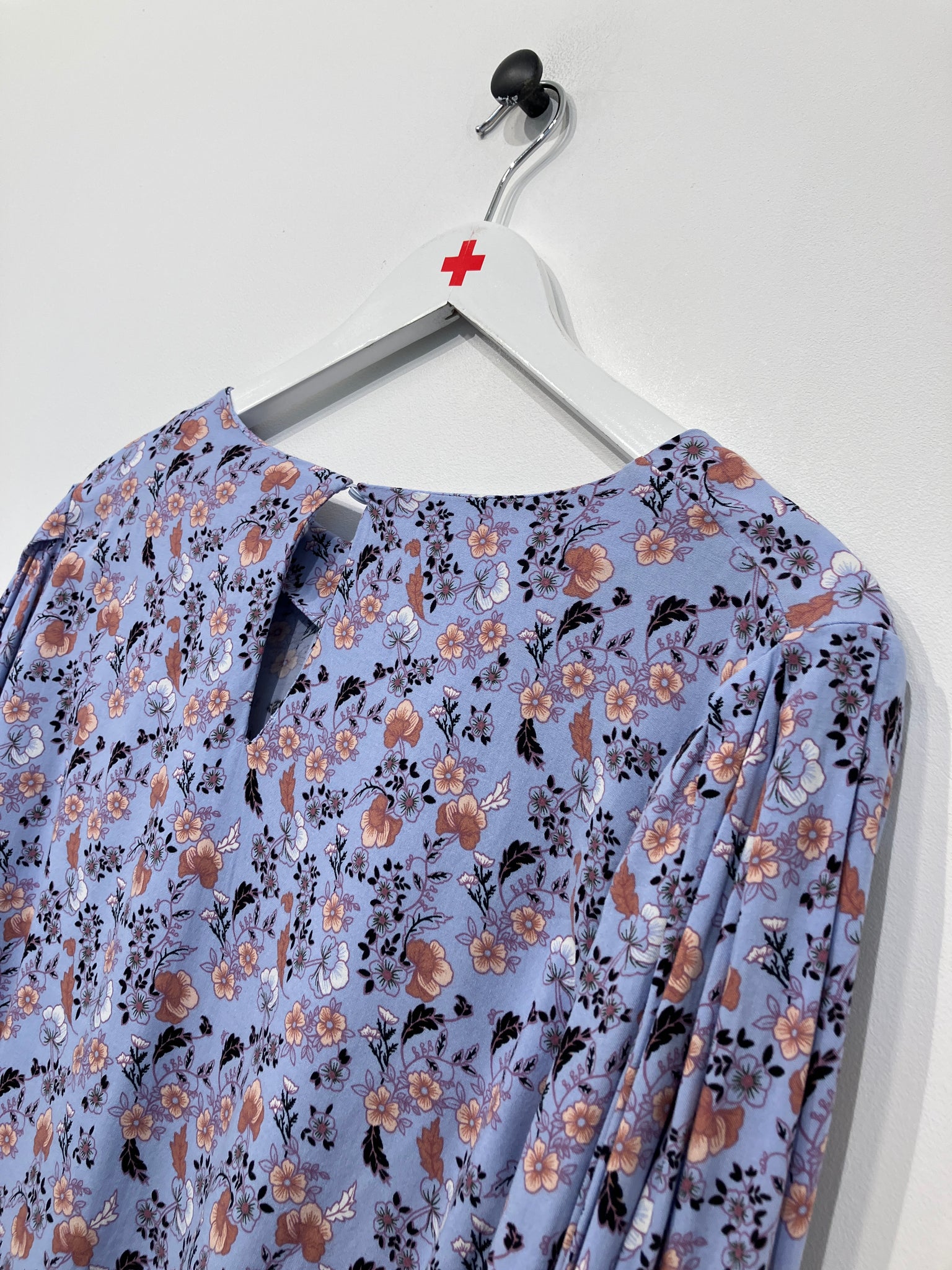 Flot bluse med lange ærmer og knaplukning i nakken.