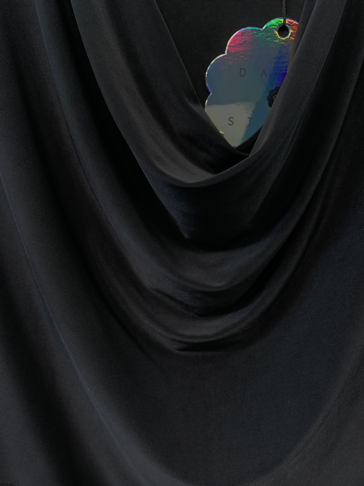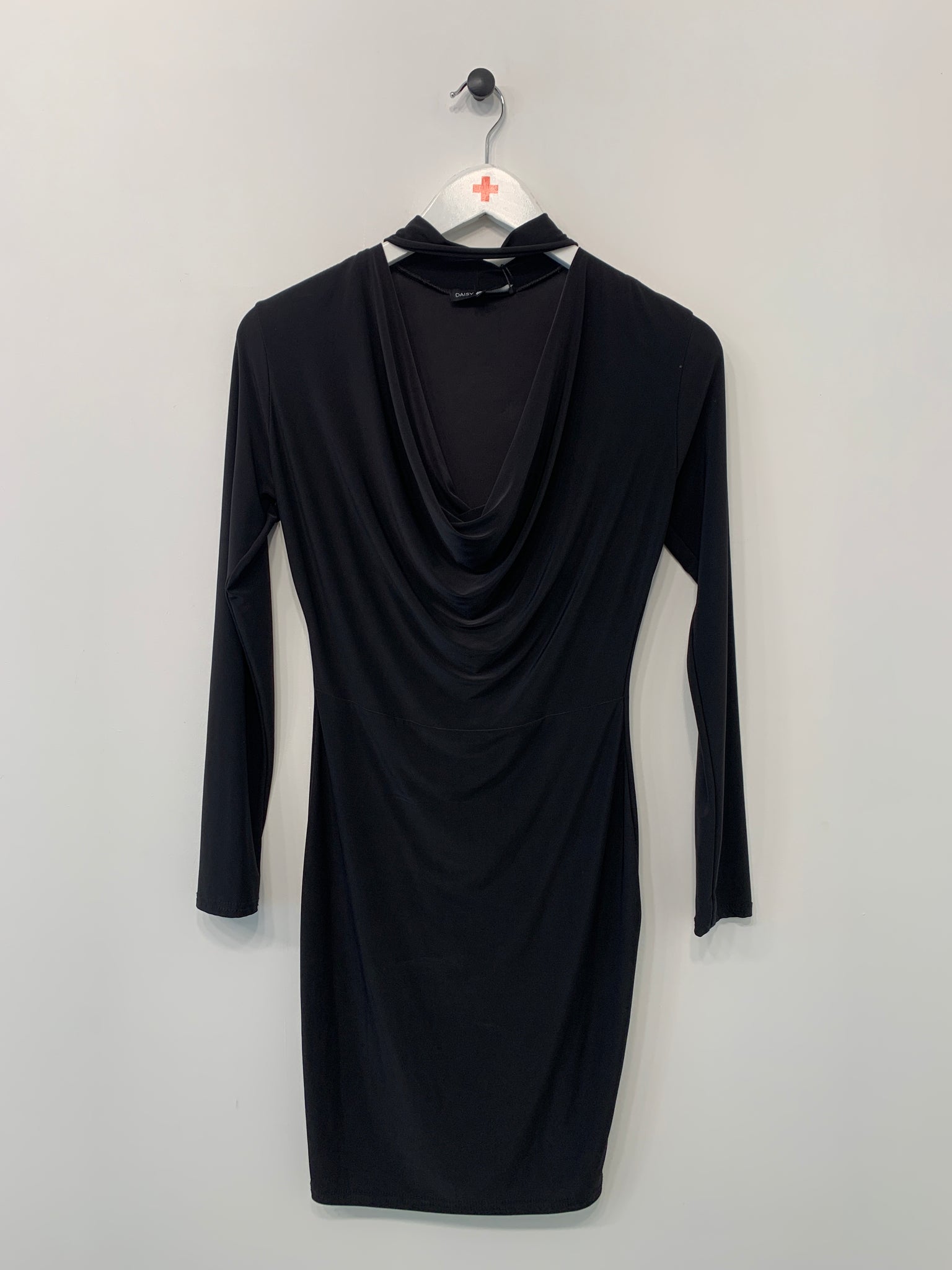 Pæn sort kjole med lange ærmer.