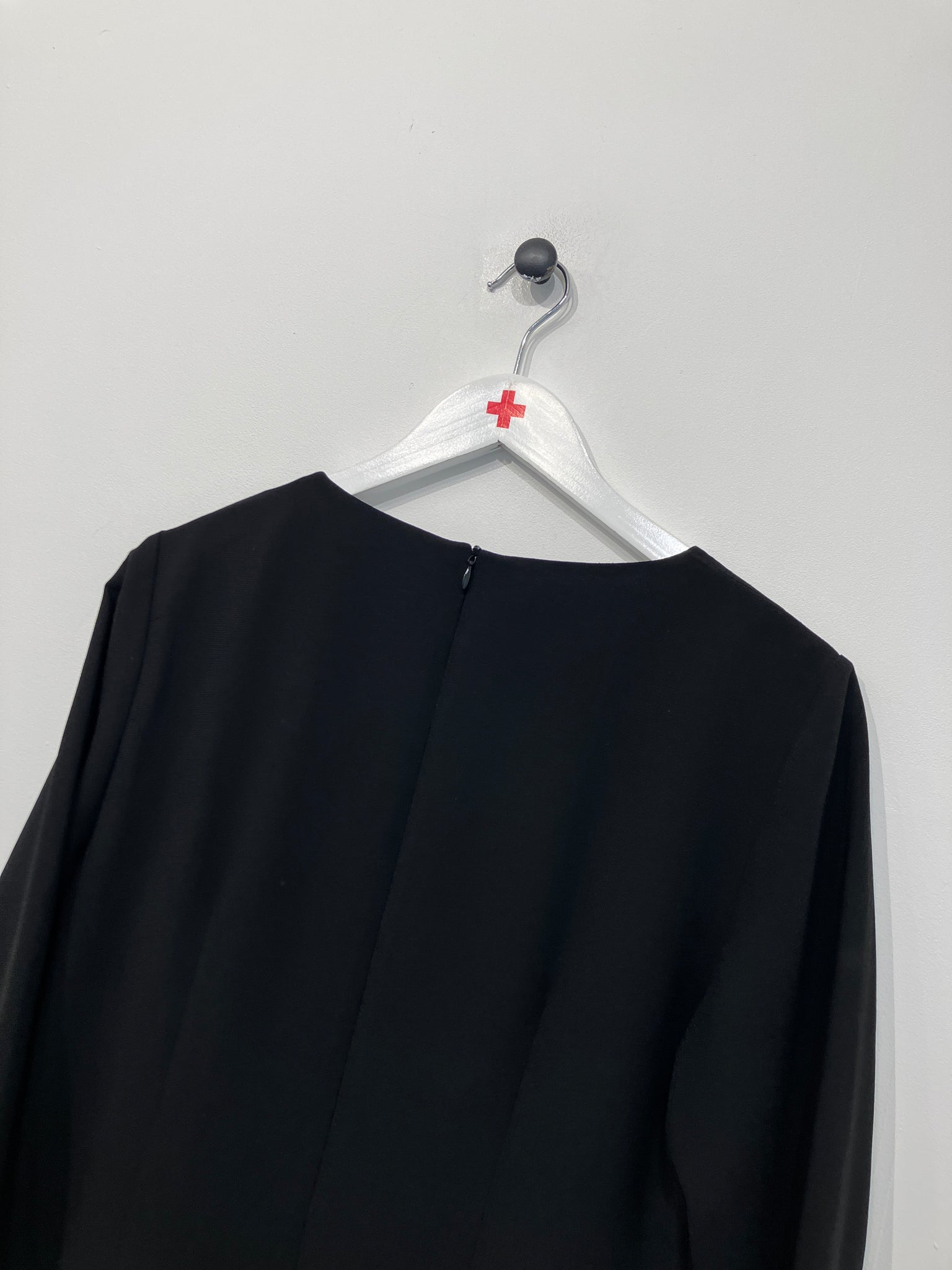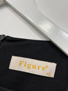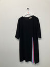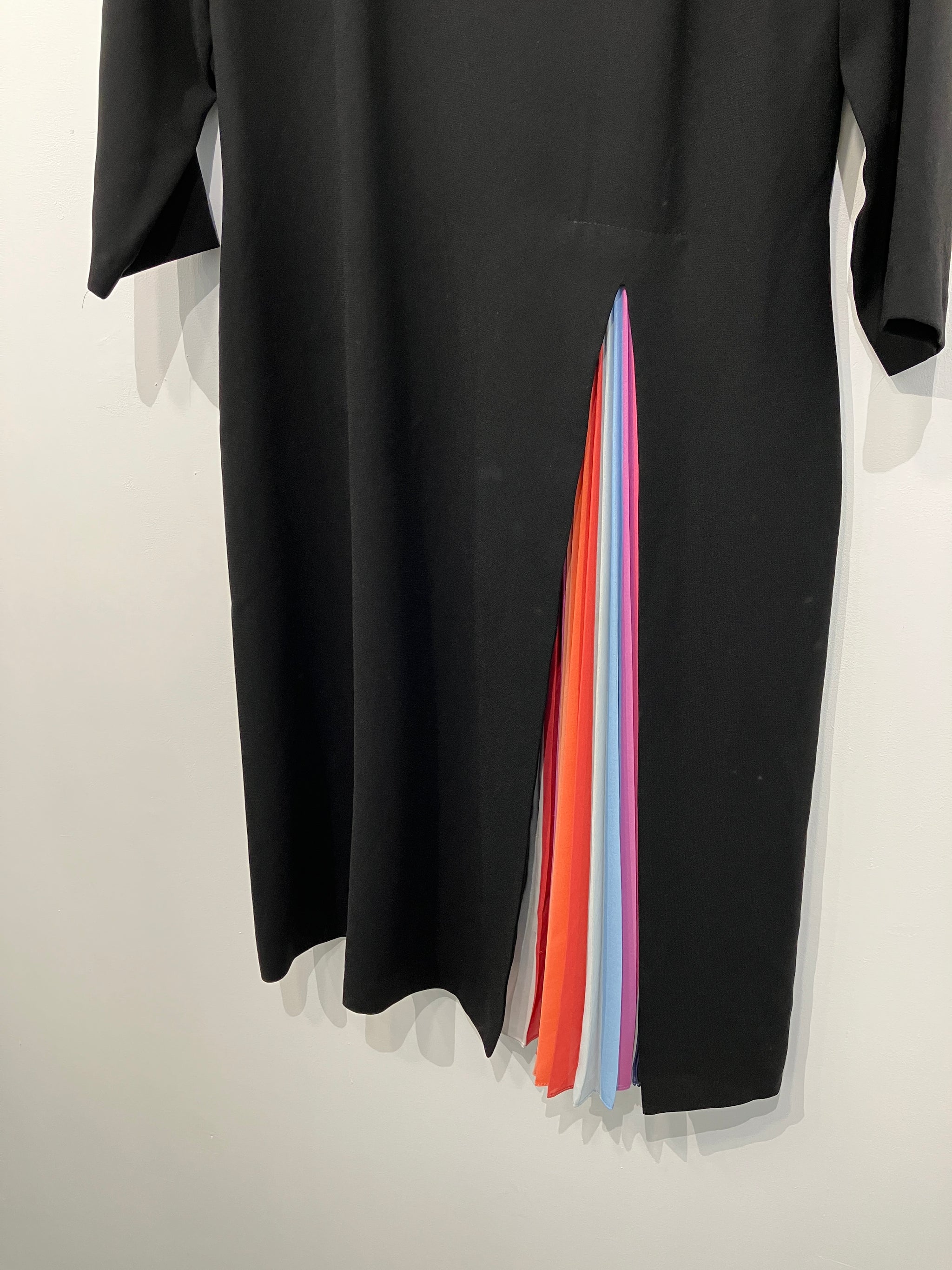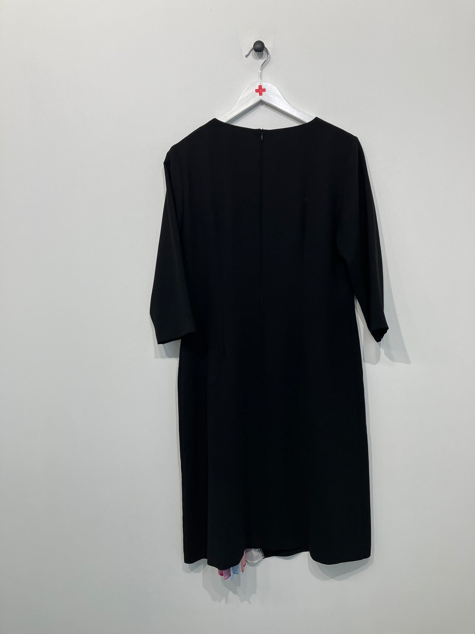 Flot lang Figure kjole med farverigt slids og pæne detaljer. Mangler vaskemærke.
