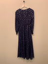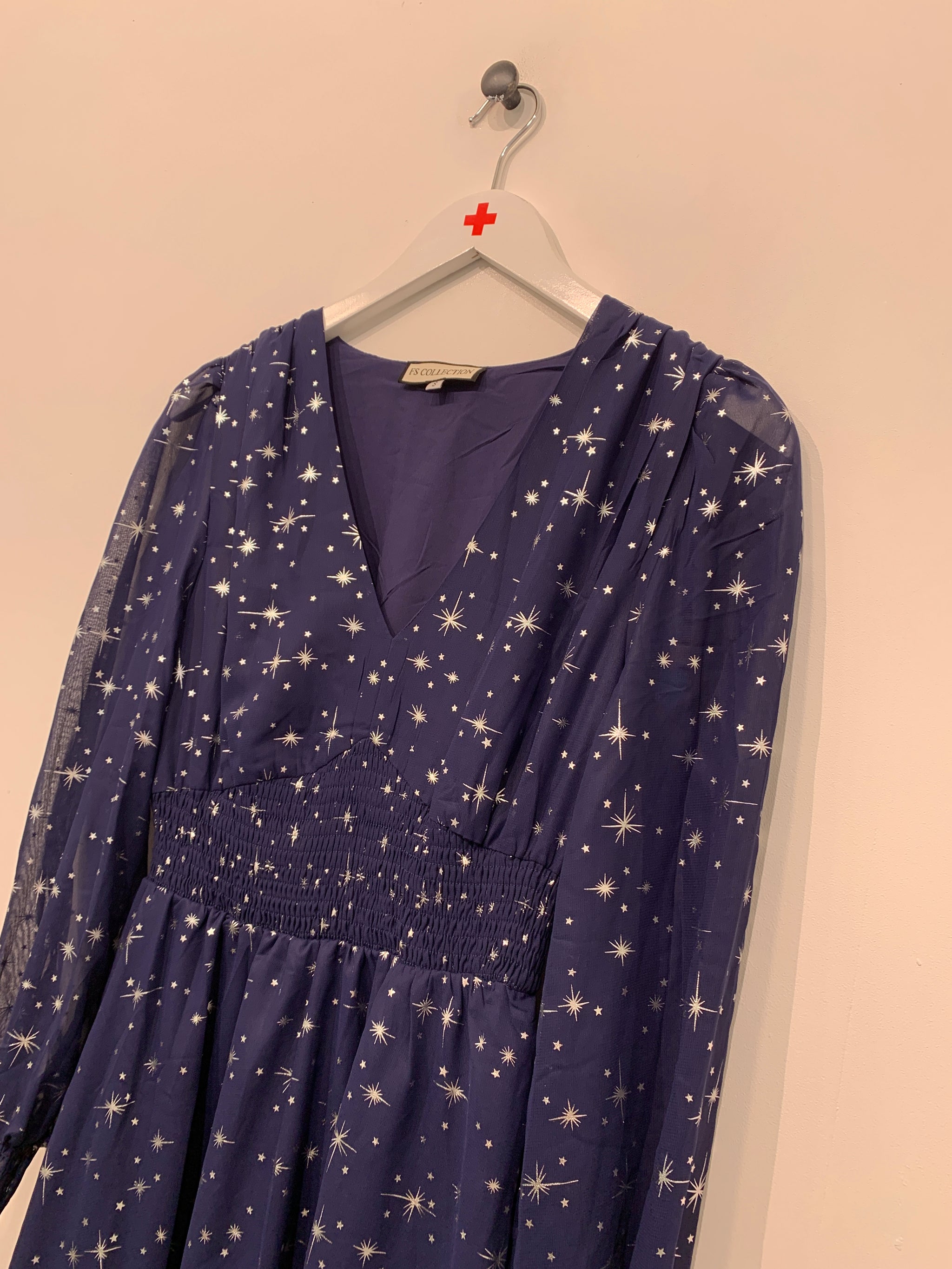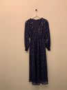 Kjole med lange ærmer og V-hals udskæring, samt med flot detalje ved taljen.
