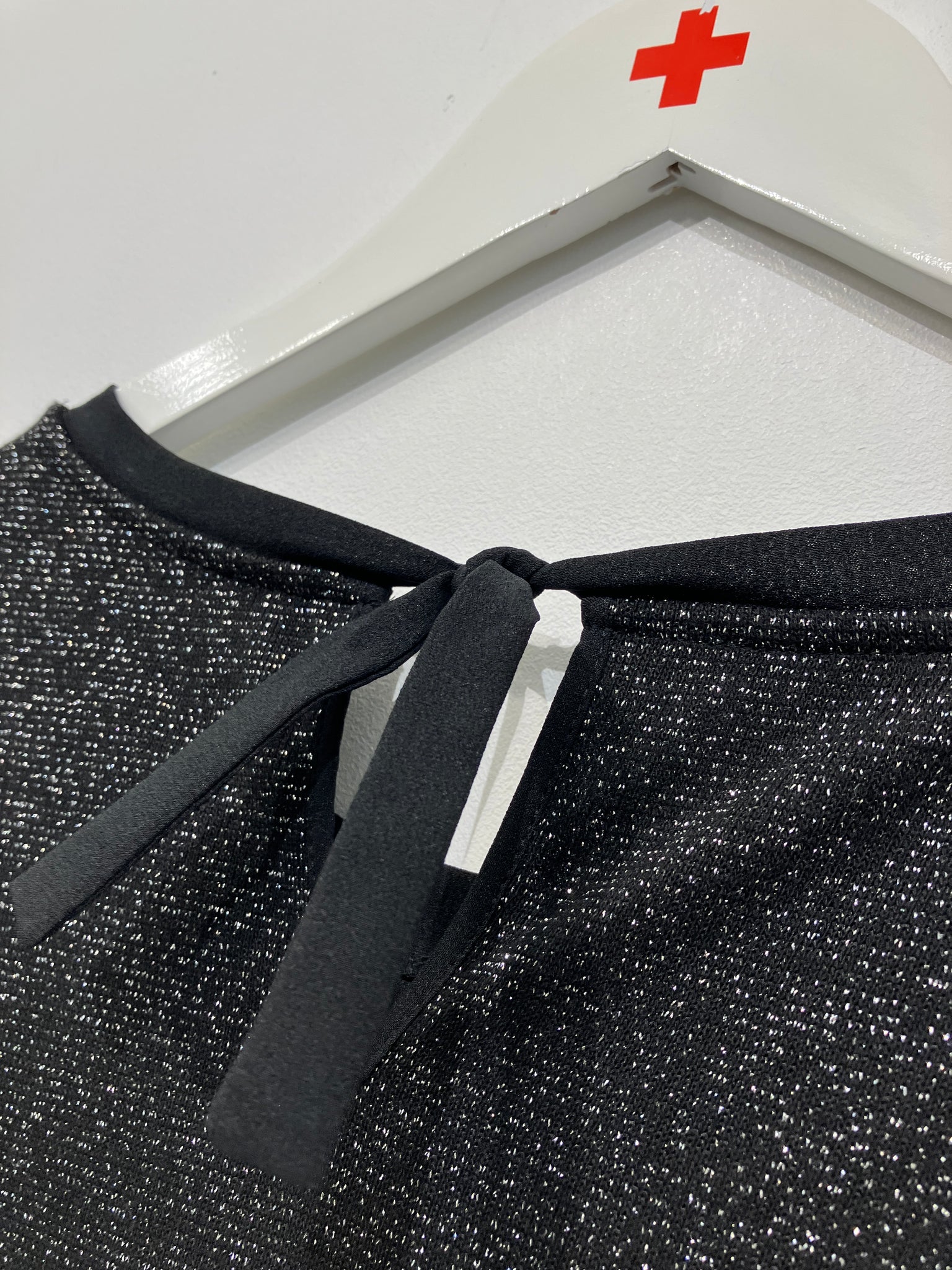 Fin bluse med binde bånd i nakken og plisseret detalje i bunden.