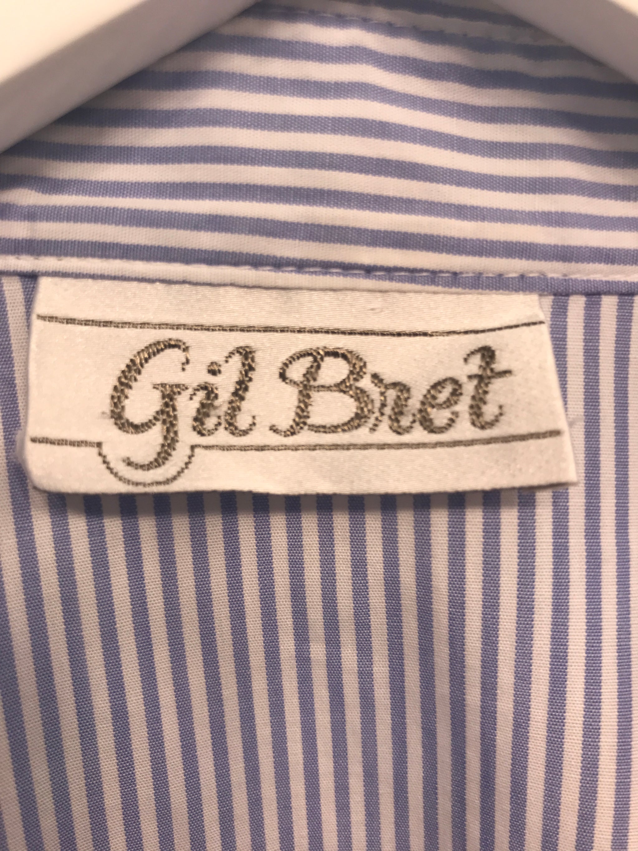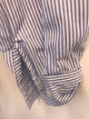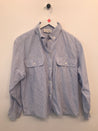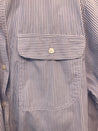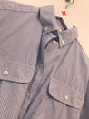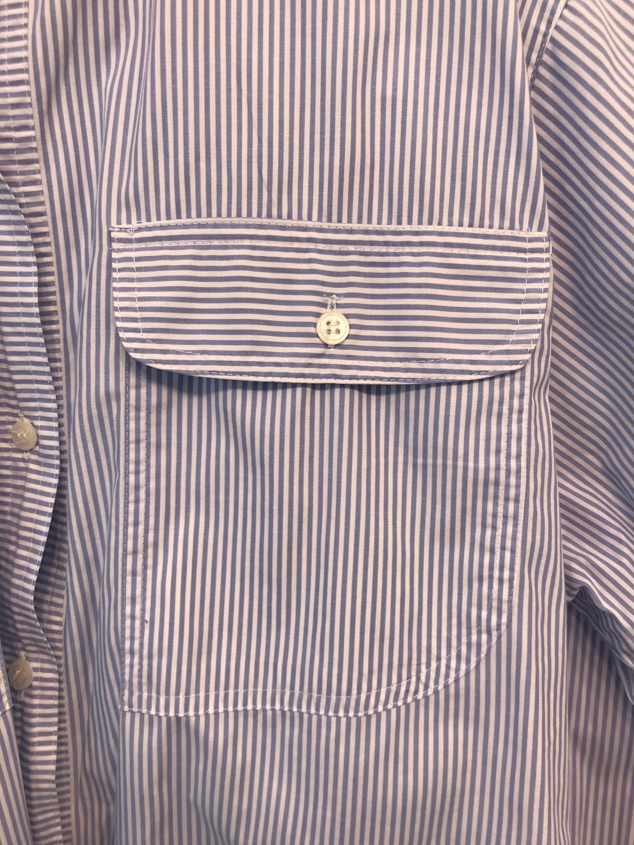 Skjorte i blå og hvid med klassisk krave og gennemgående knaplukning. Skjorten har lange ærmer og store forlommer med flap og knaplukning.