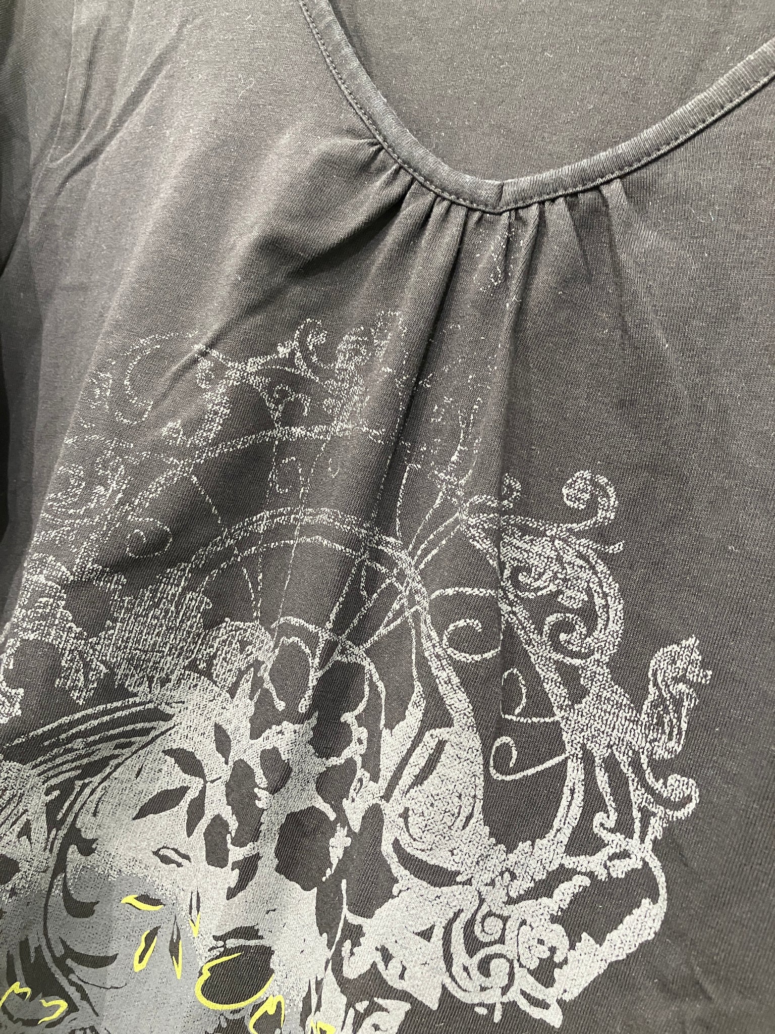 Fin, langærmet bluse af mærket Green House med tryk på forsiden.
