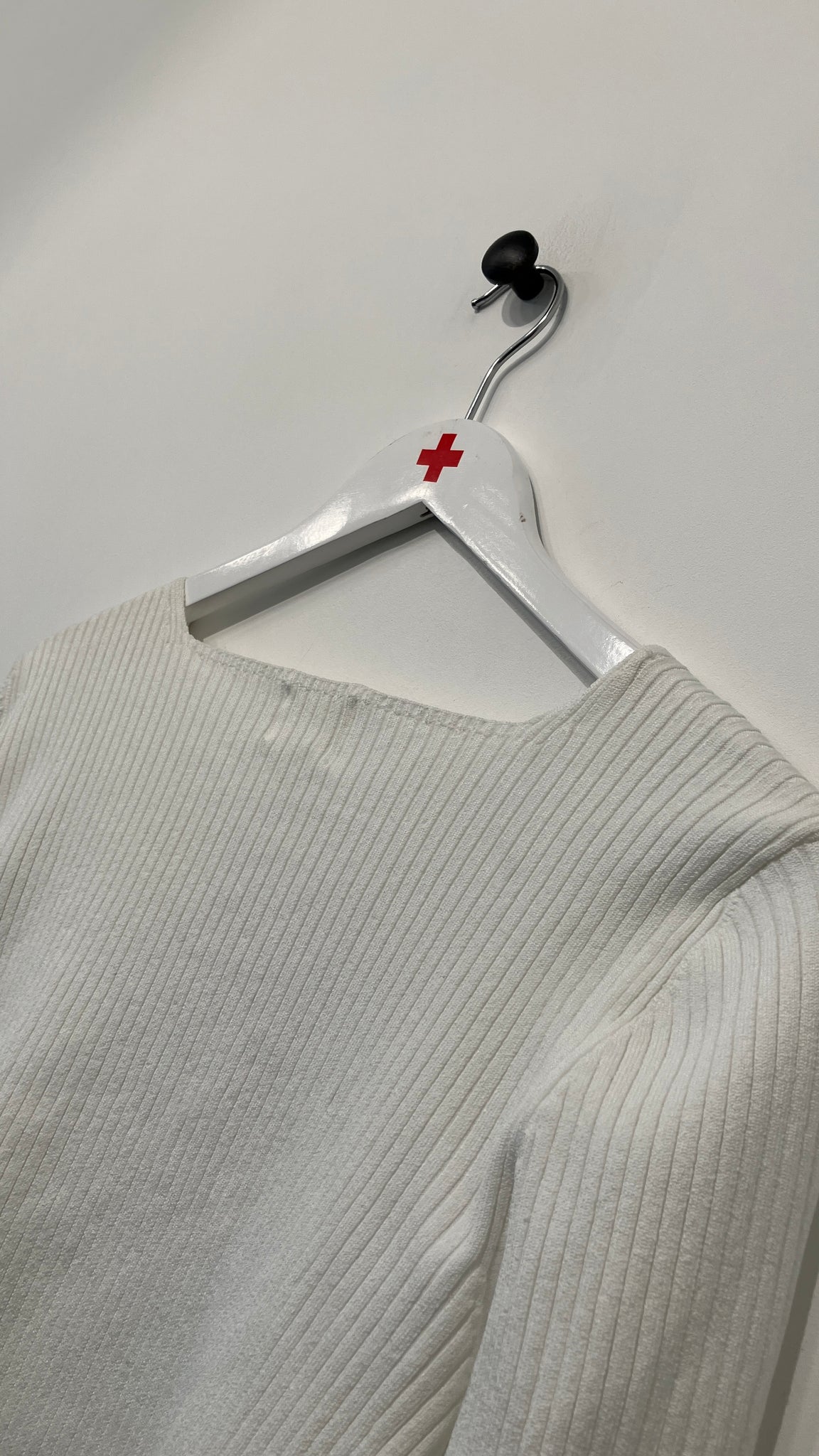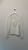 Strik bluse med skrå V udskæring, lange ærmer.