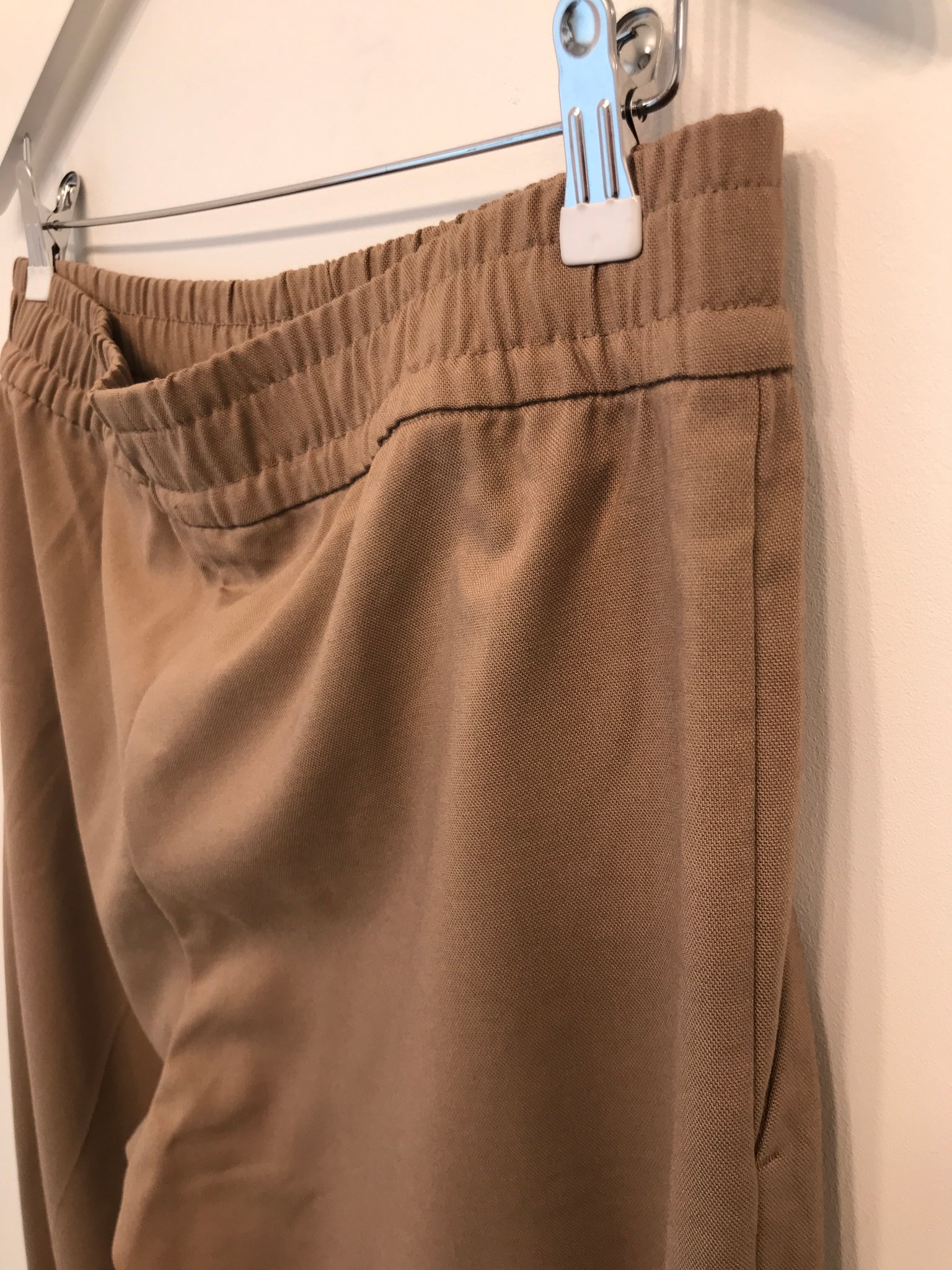 Pæne og komfortable løse bukser med lige ben, syet pressefold og elastik i taljen.