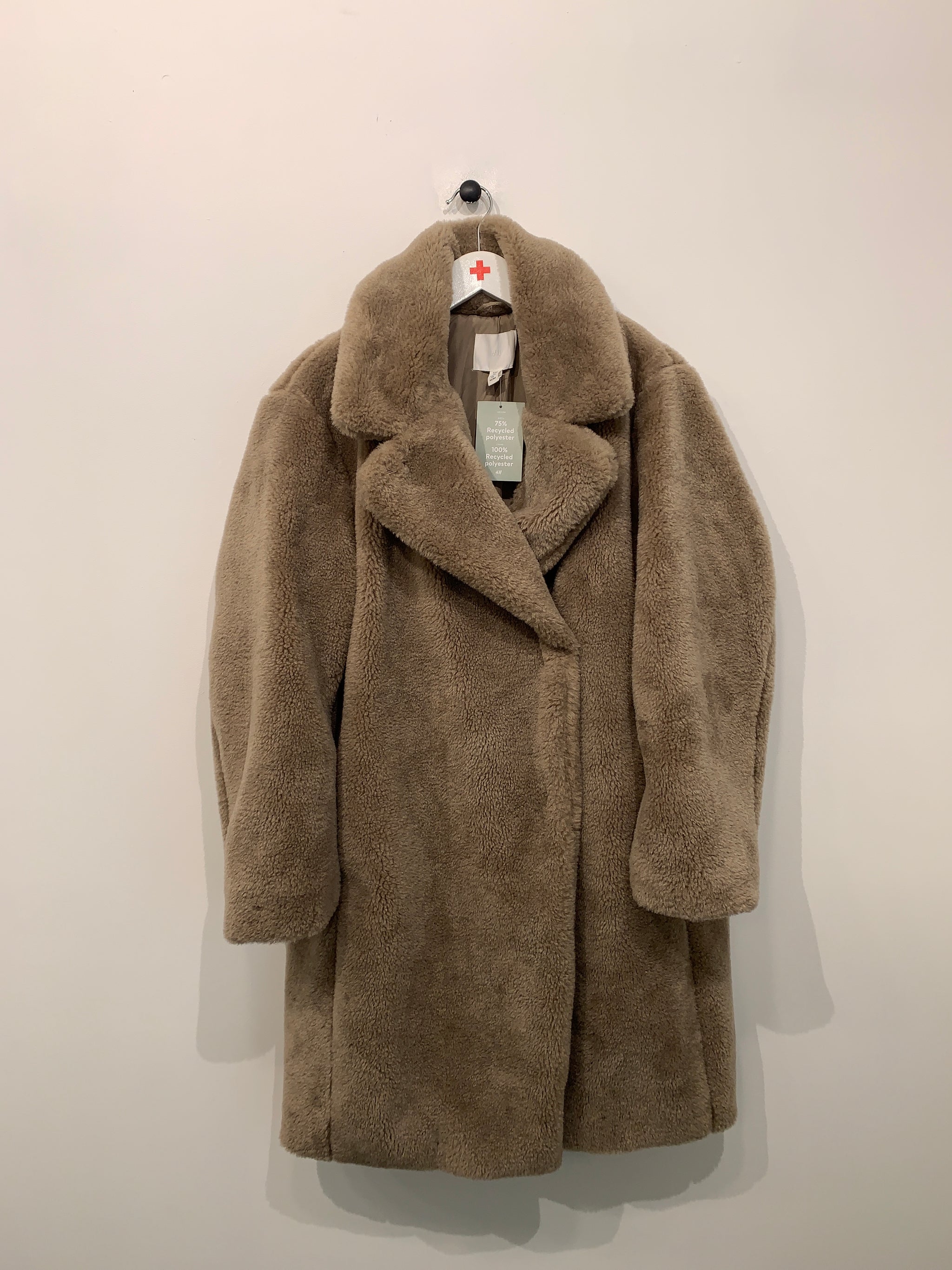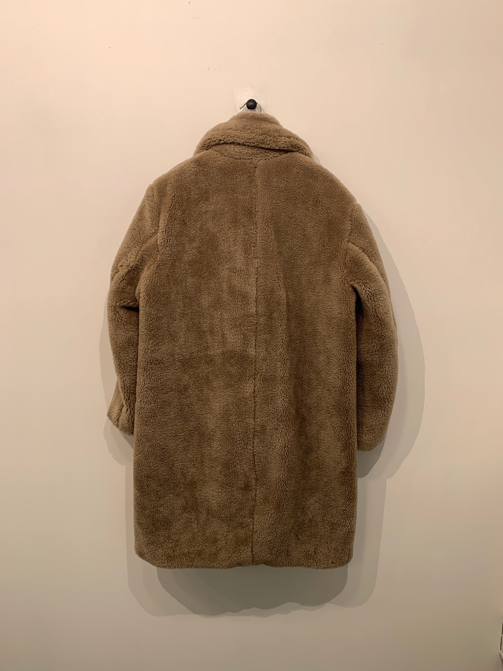 Blød teddybear frakke i varmt materiale med løs pasform, brede revers, skjult knaplukning og lav skuldersøm.