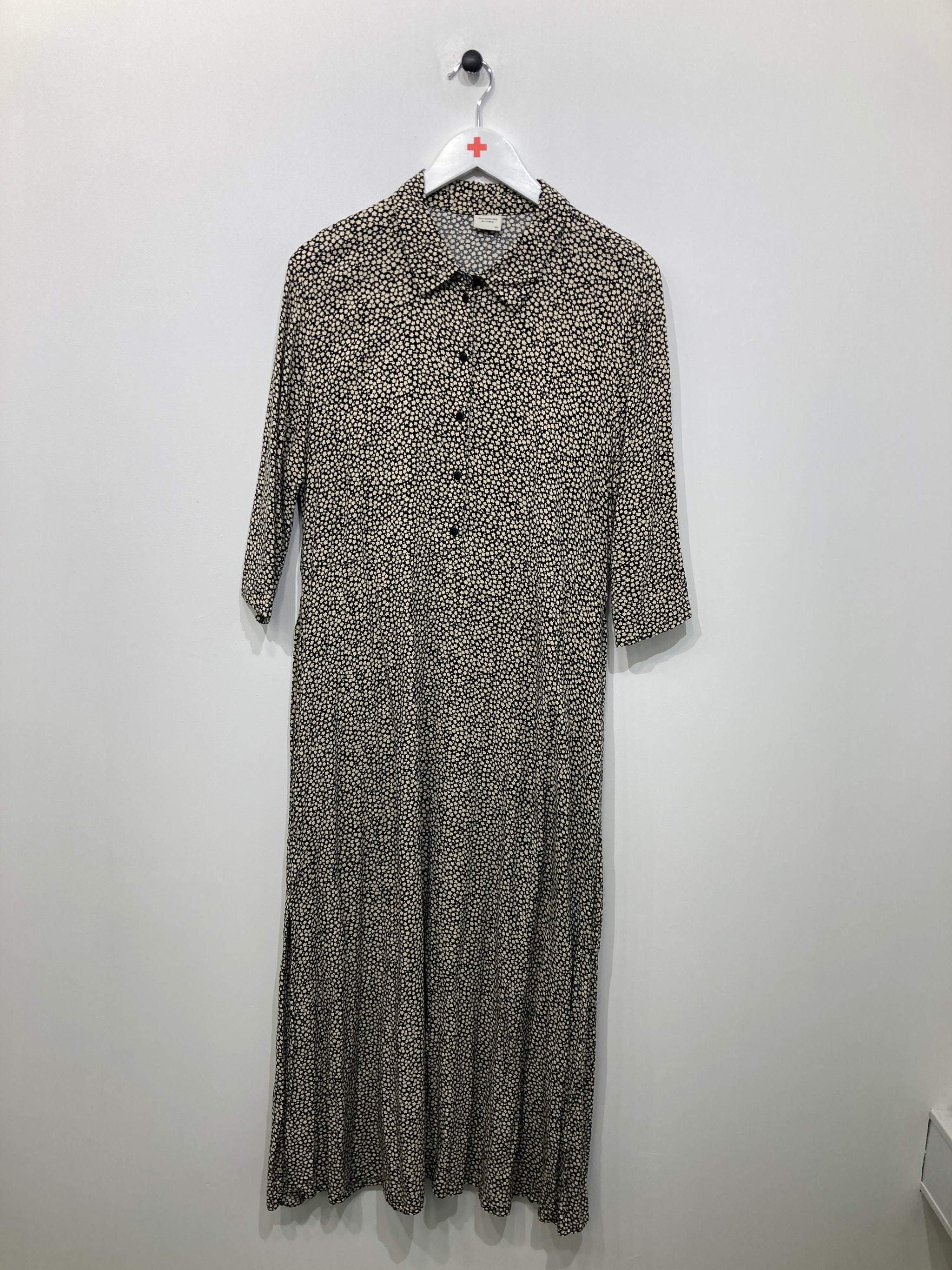 Lang skjortekjole med bindebånd i taljen.