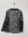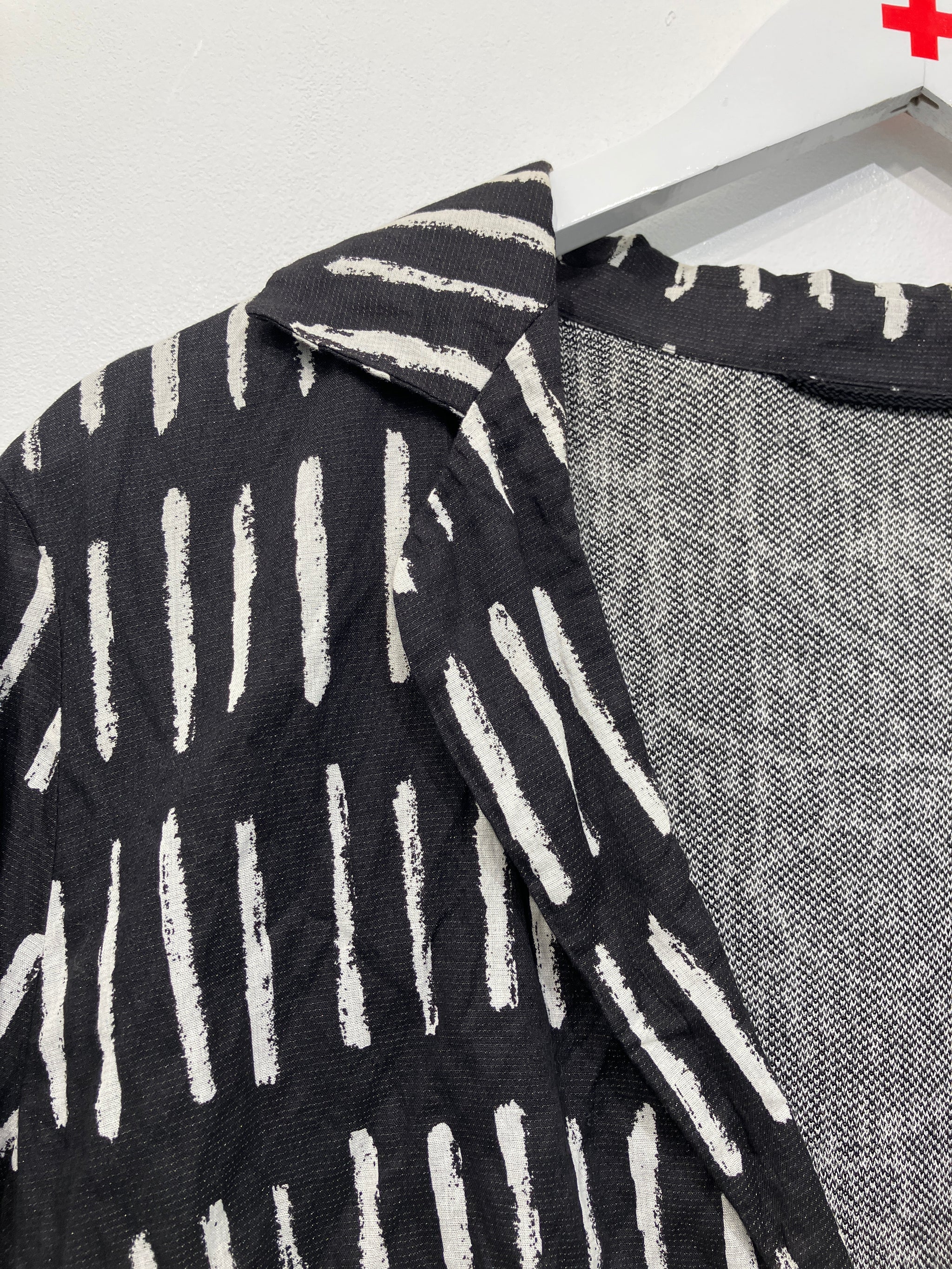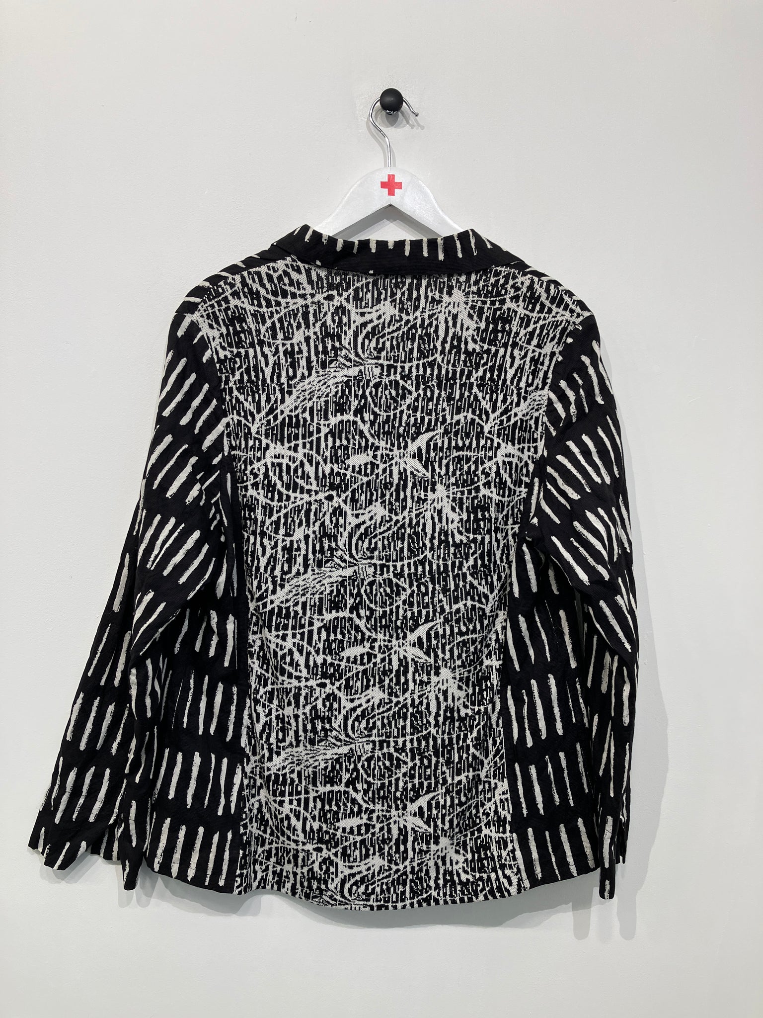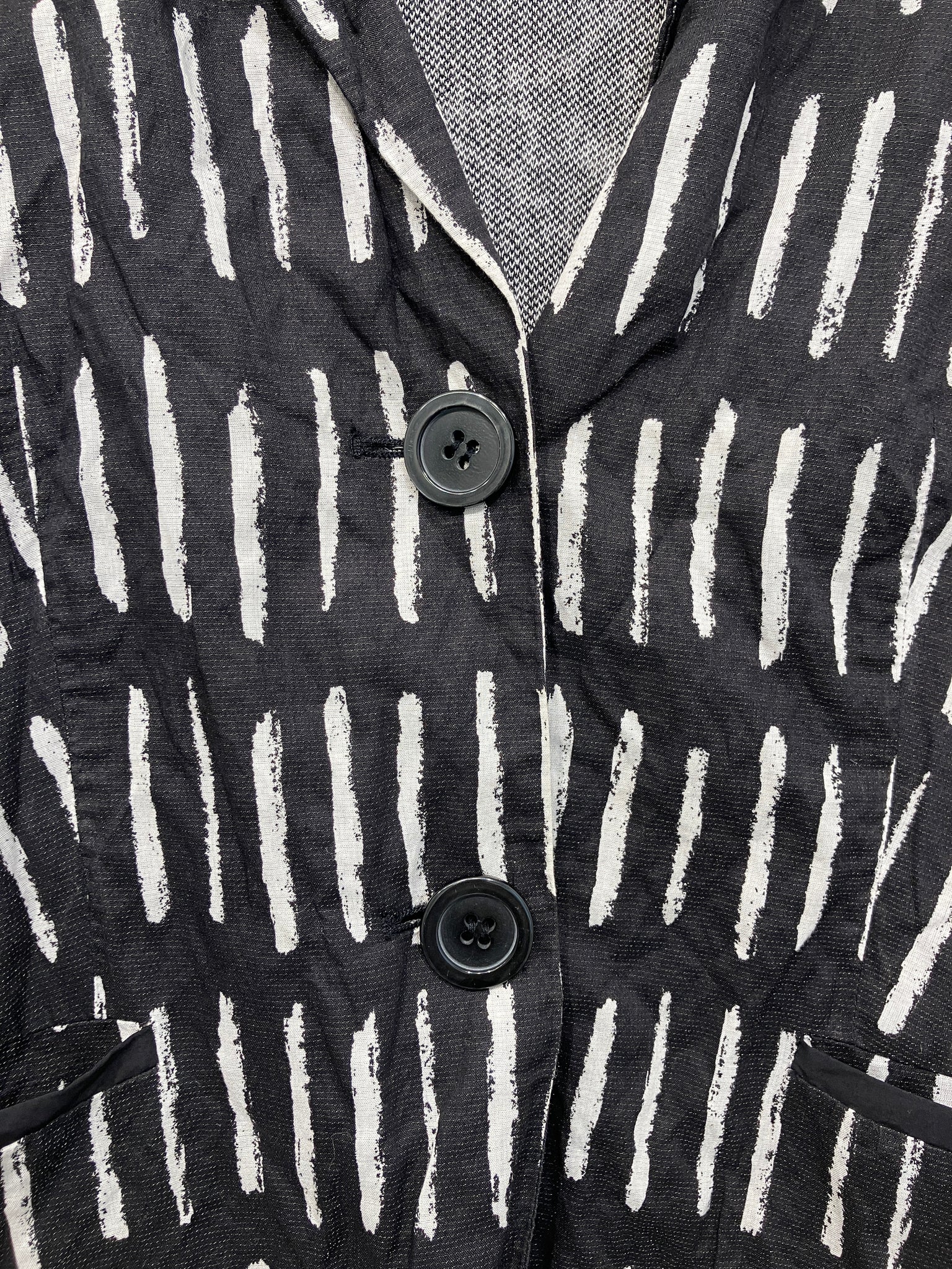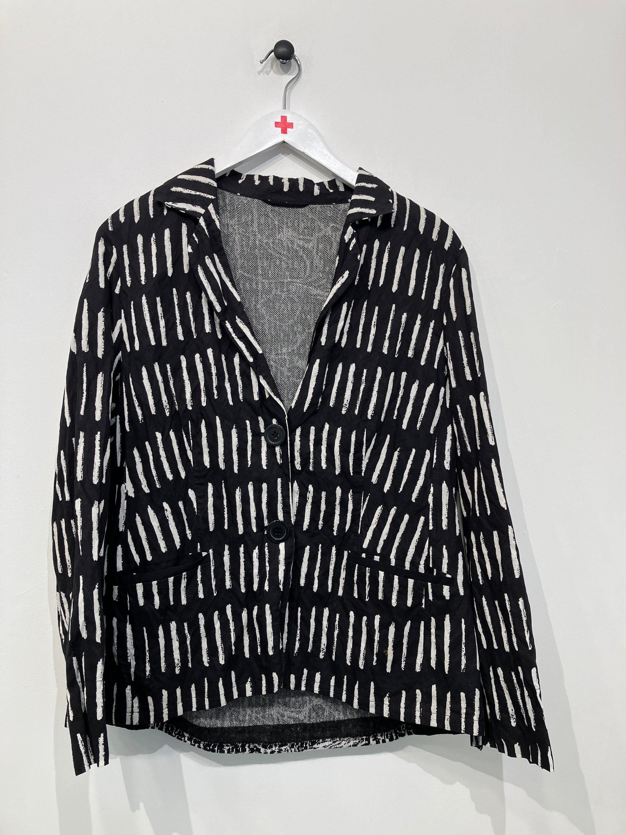 Knaplukket jakke med lommer på front, lange ærmer. To-farvet.