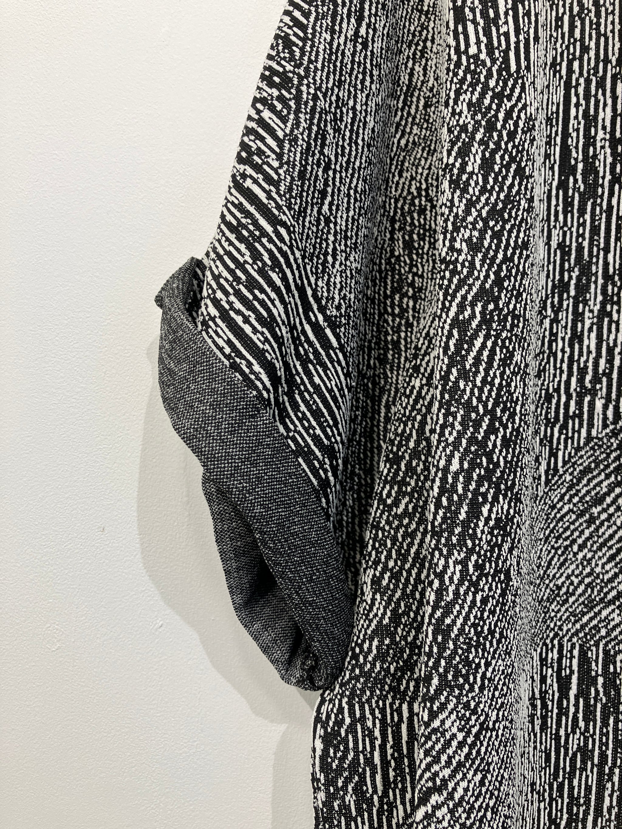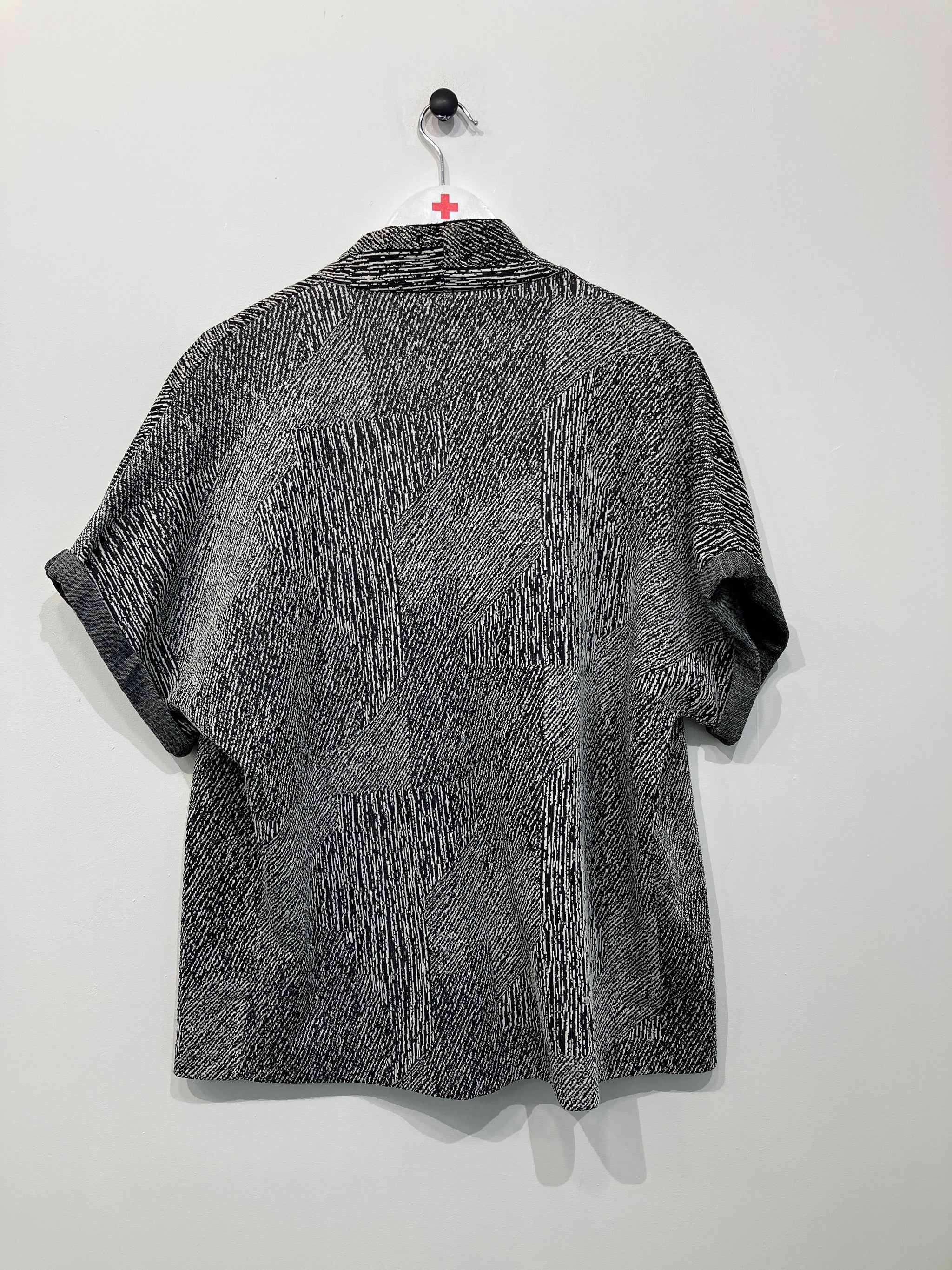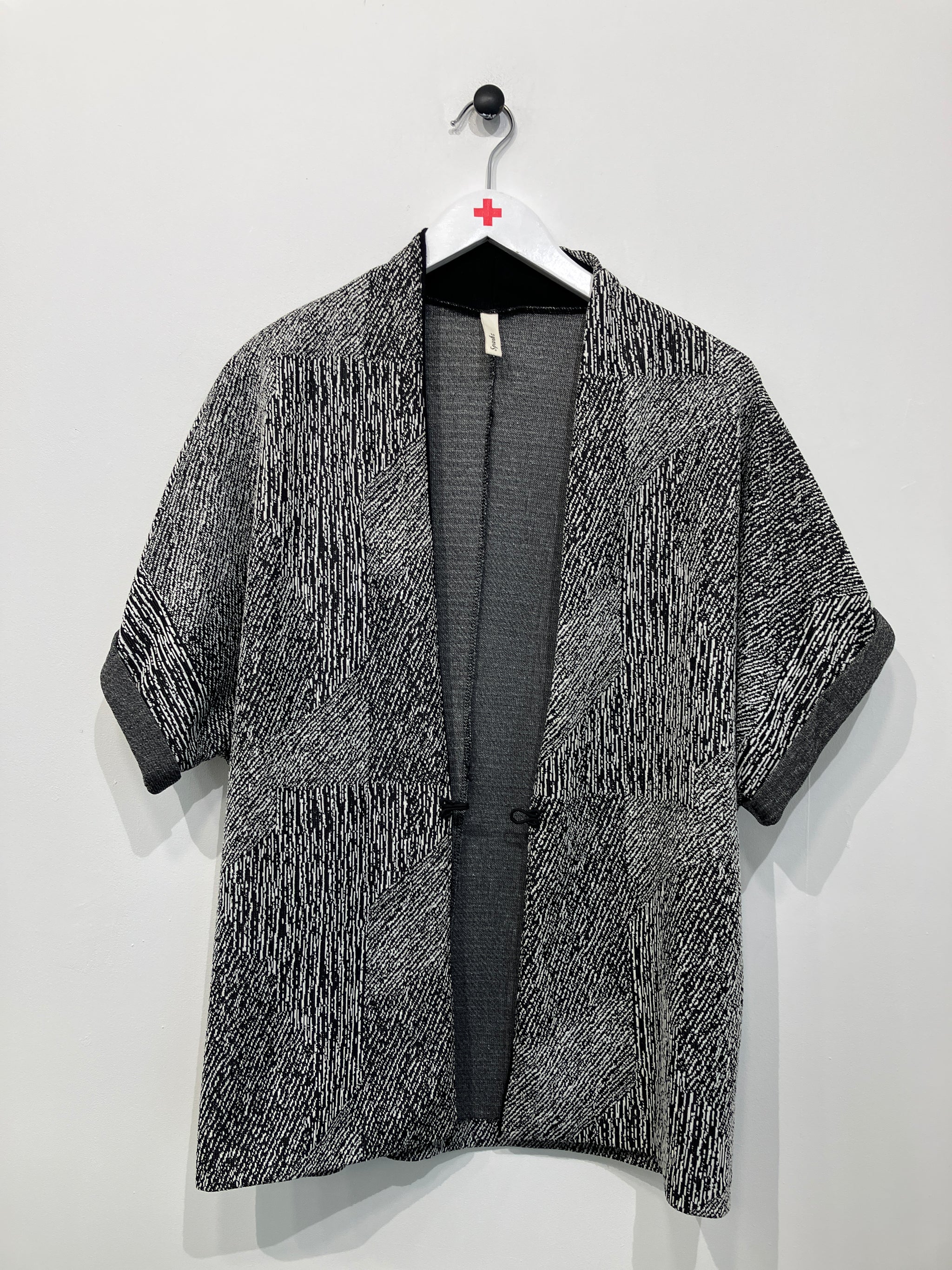 Jakke med lukning på midte, 3/4 ærmer med opslag.