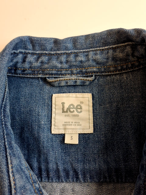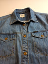O549 Cowboykjolen er lavet af denim med knaplukning, lange ærmer og lommer på brystet.