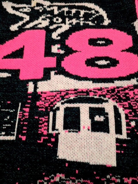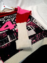 Matty Bovan oversized striktrøje med glimmer i det farverige mønster
