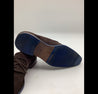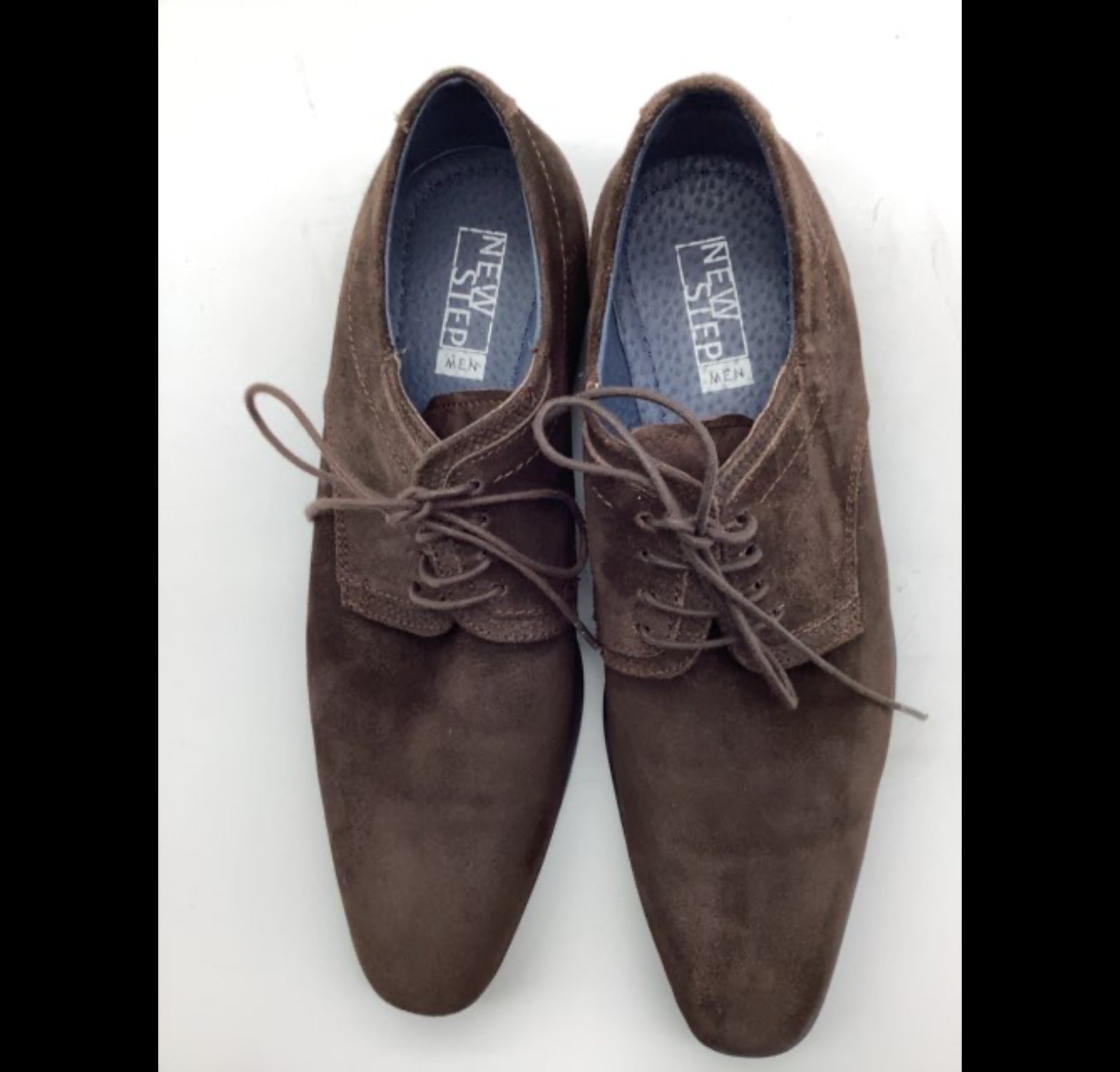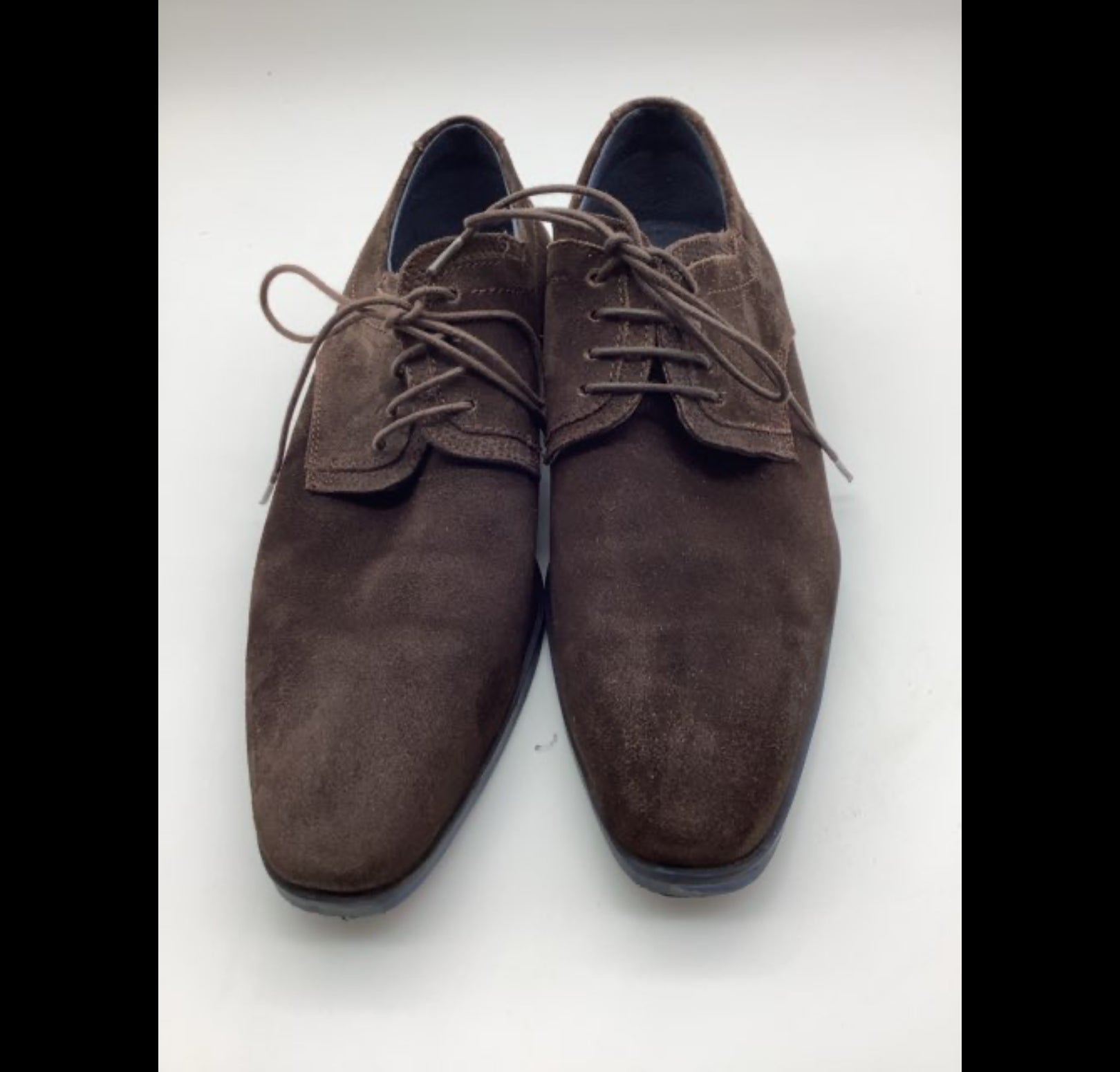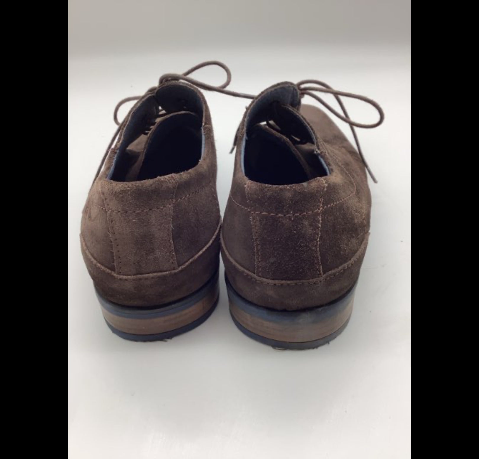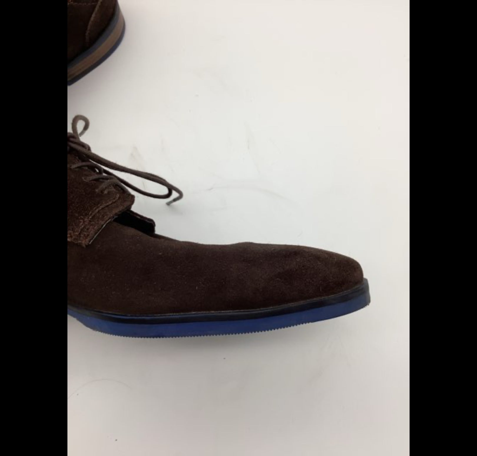 H823/Skoene er lavet af ruskind og har snørebånd. De er i en klassisk, slank form. Blå gummisåler.