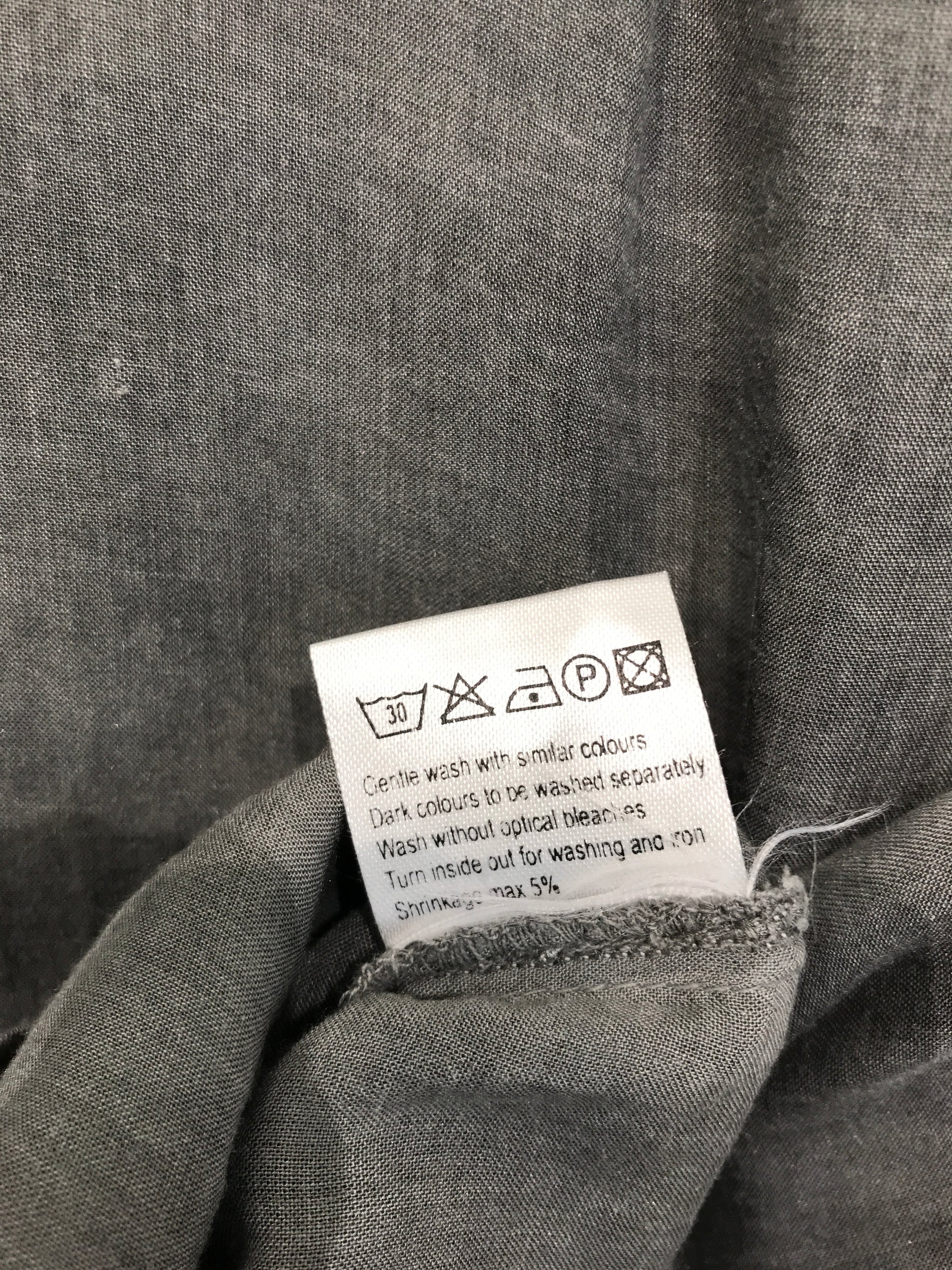 Da vi sælger brugt tøj, der er blevet vasket, kan vi ikke garantere, at størrelsesangivelsen ligger inden for en standardskala.