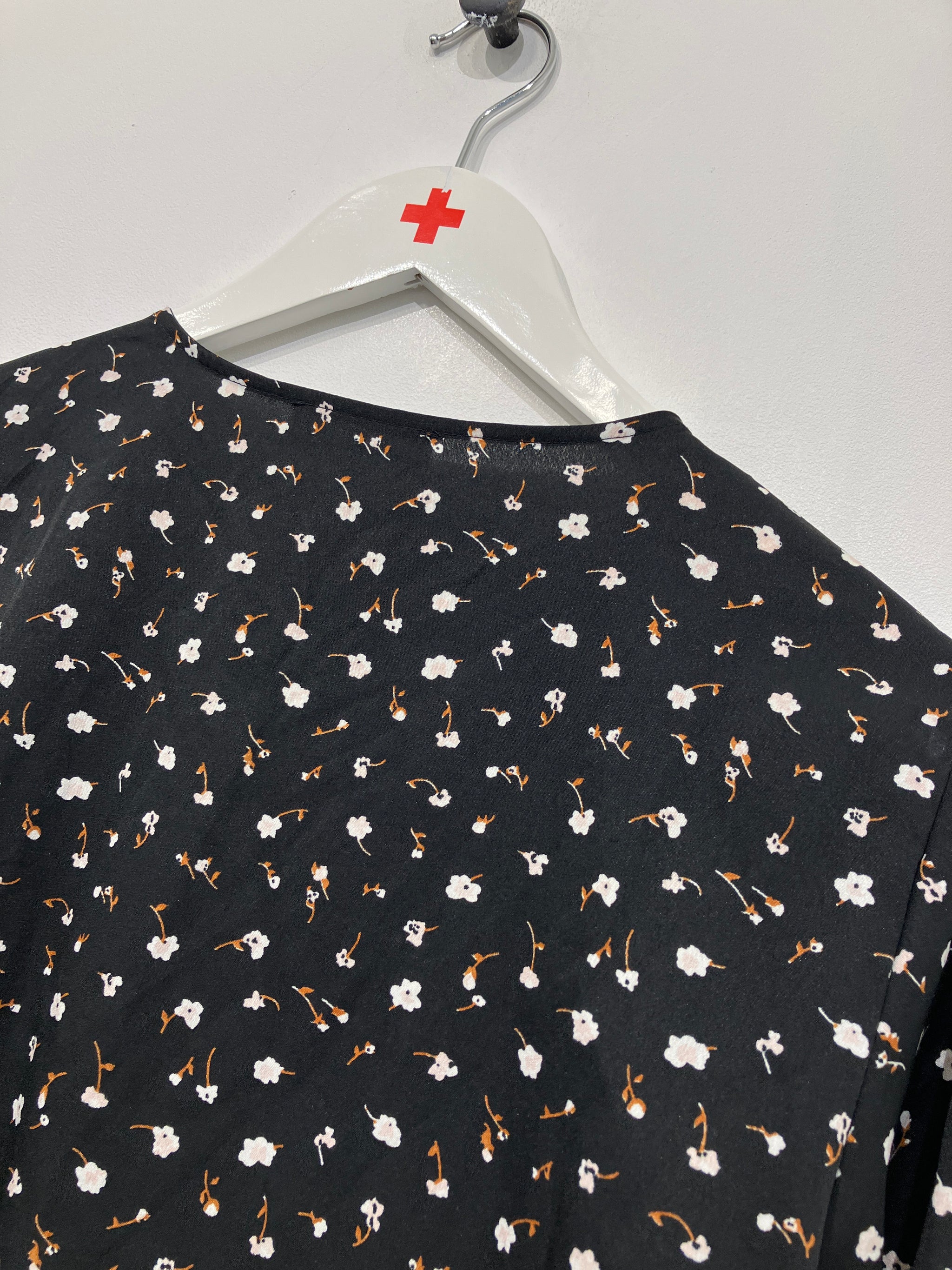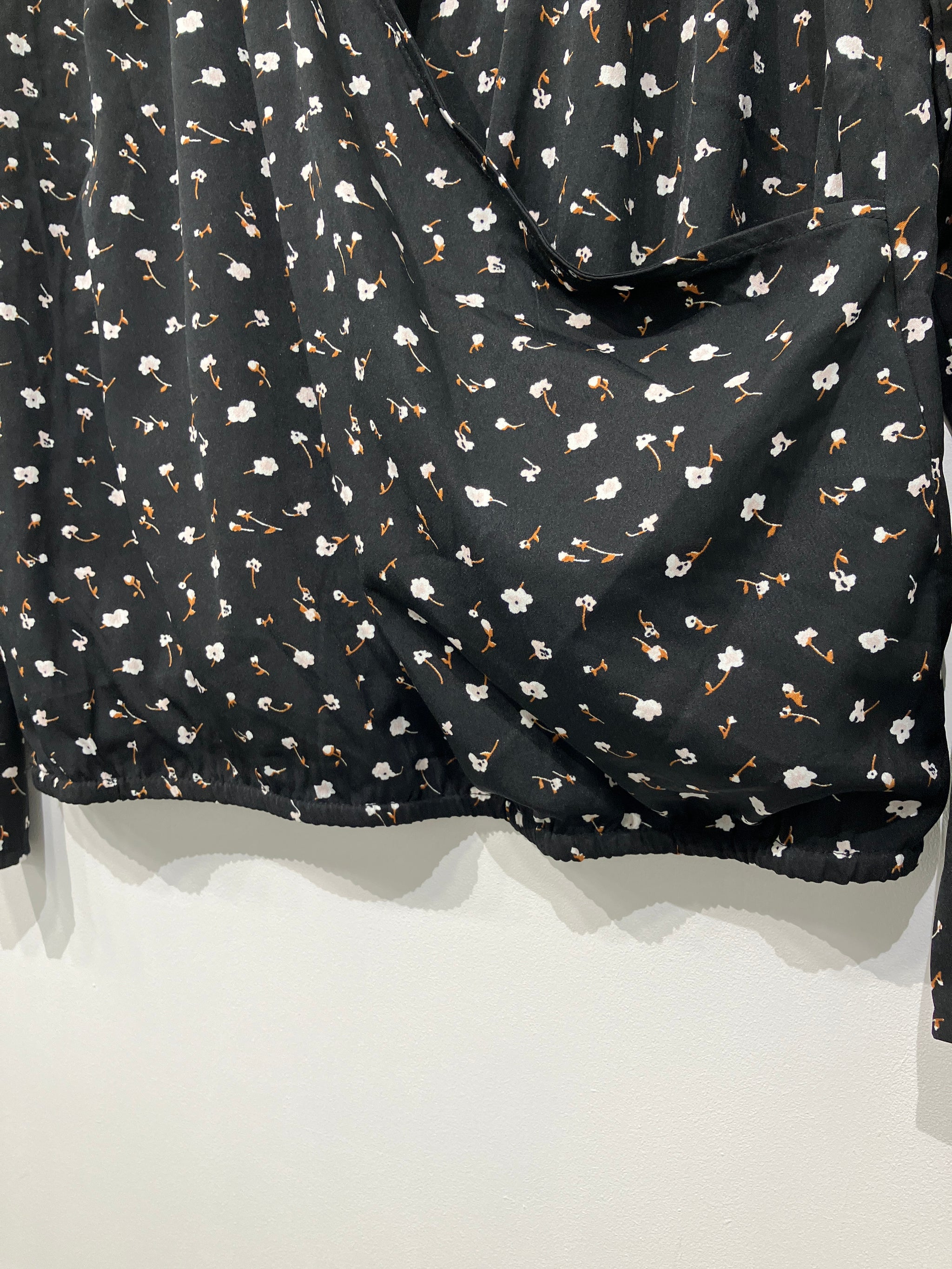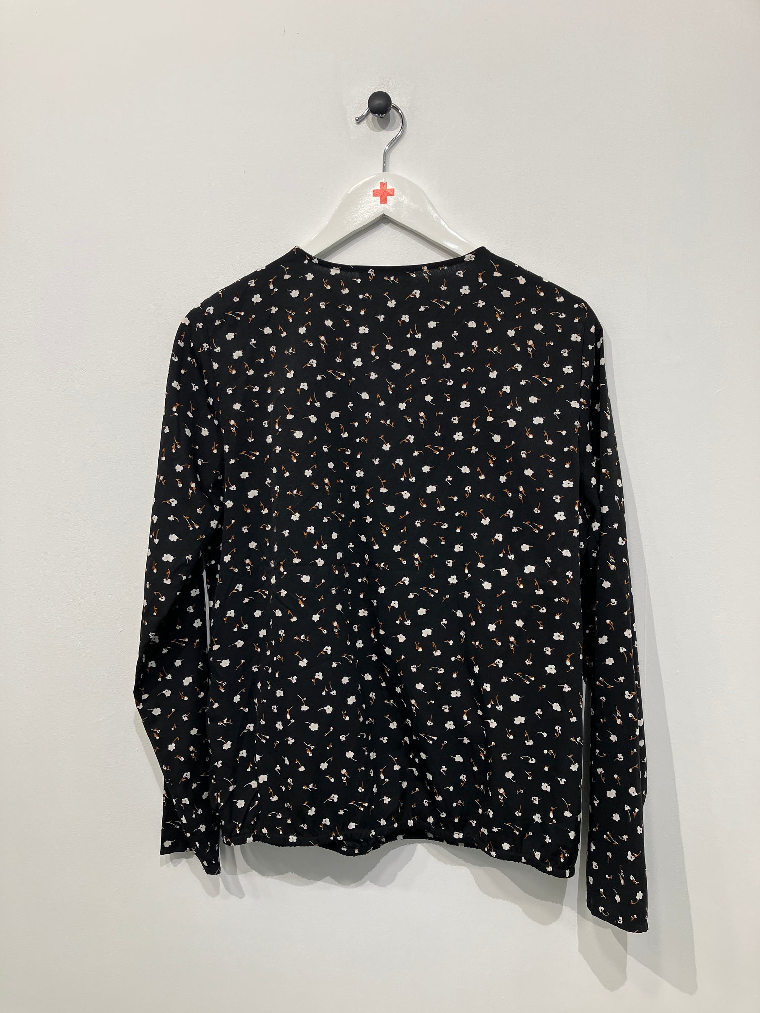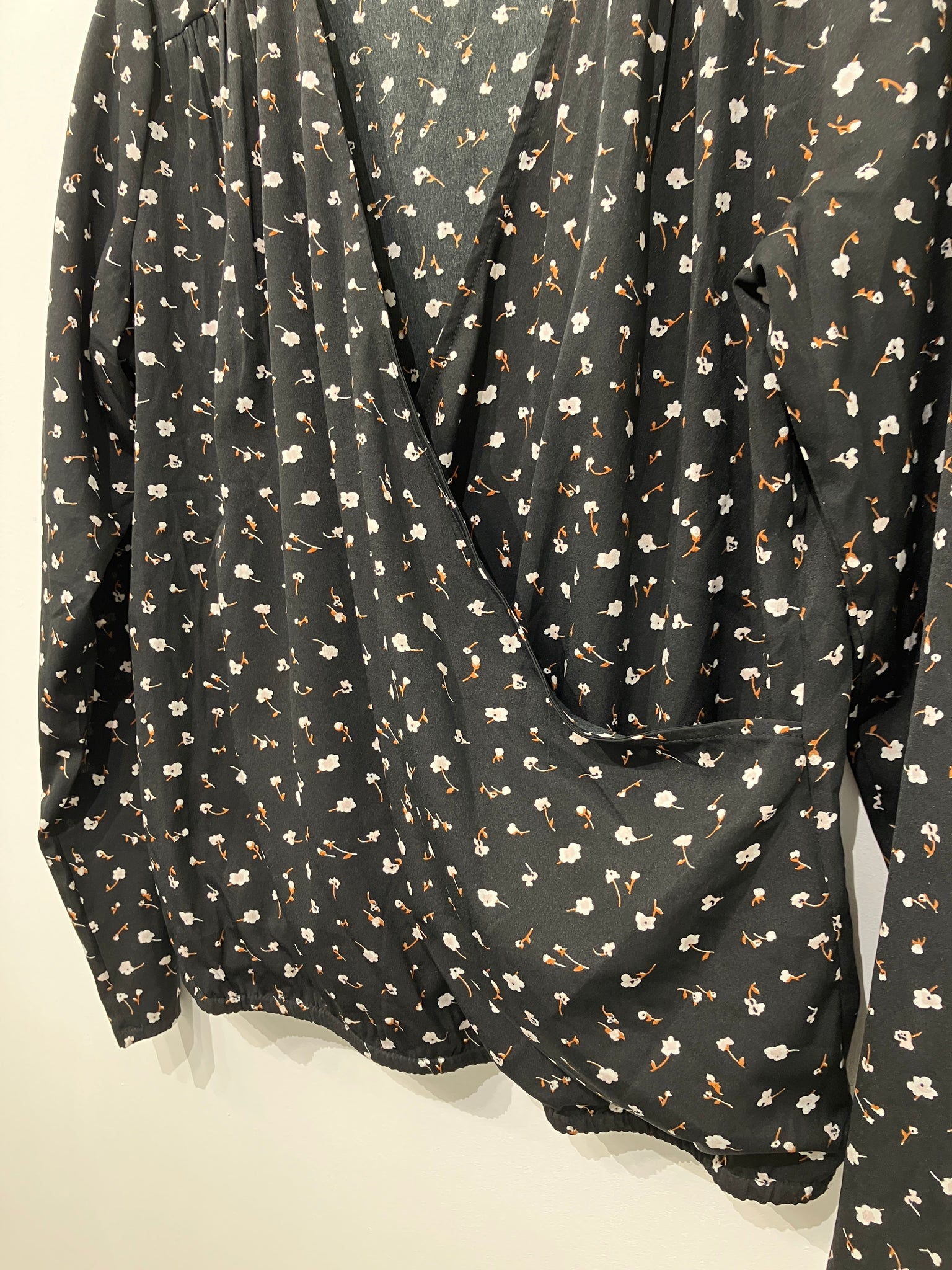 Fin bluse med dyb v-udskæring og lange ærmer.