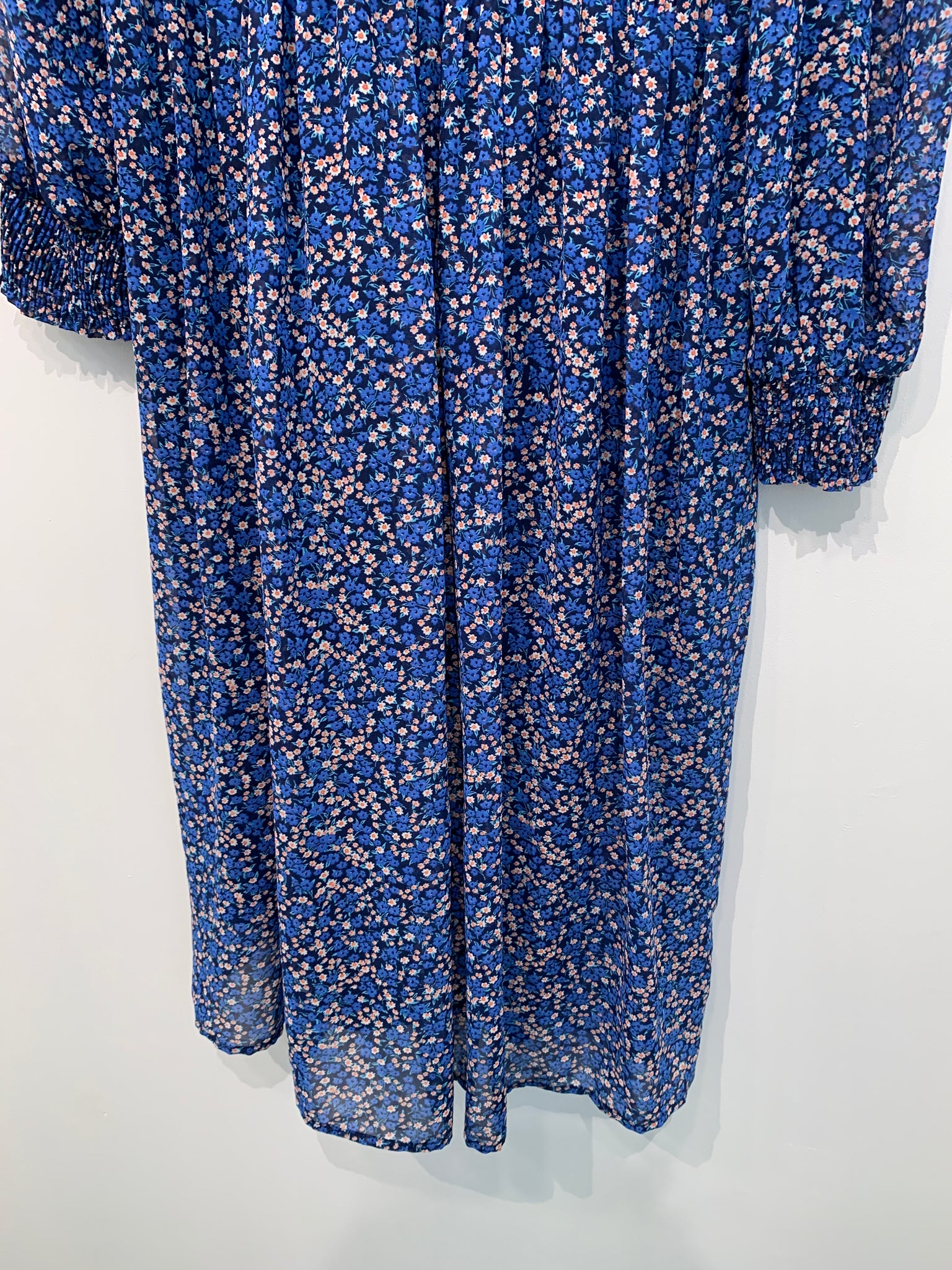 Lang ærmet kjole med en kina krave.