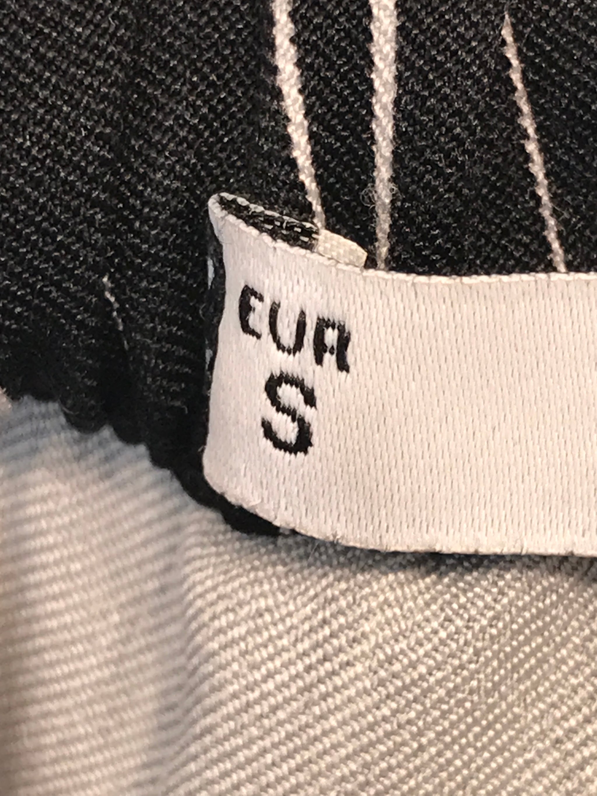 Da vi sælger brugt tøj, der er blevet vasket, kan vi ikke garantere, at størrelsesangivelsen ligger inden for en standardskala.