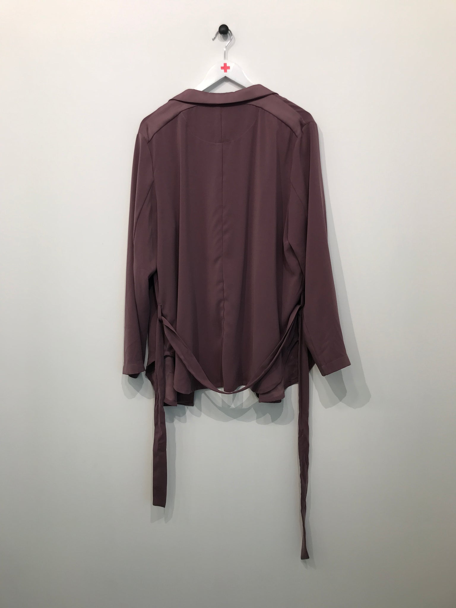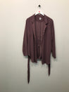 Tynd jakke, åbenstående med bælte lukning og lange ærmer.