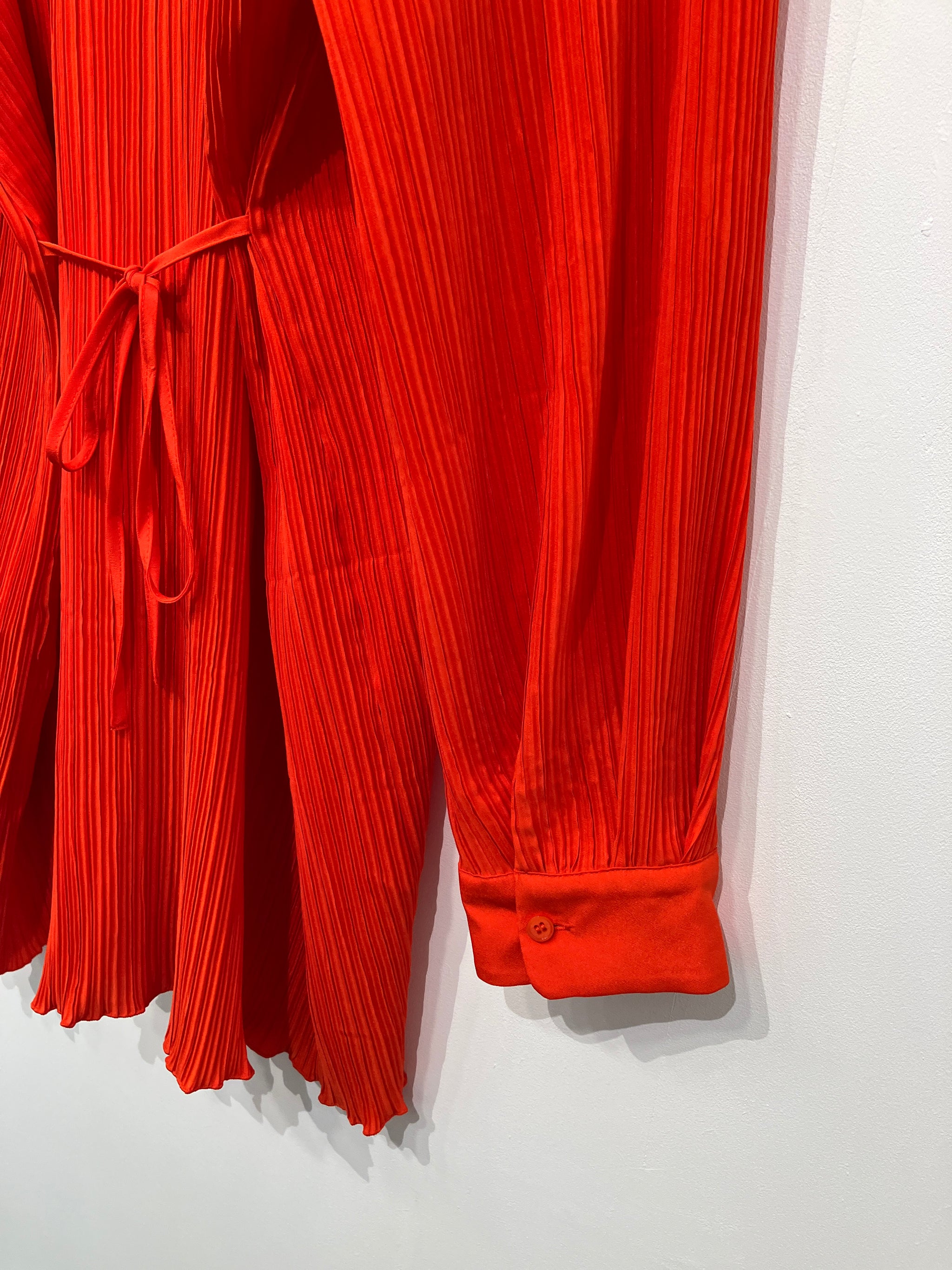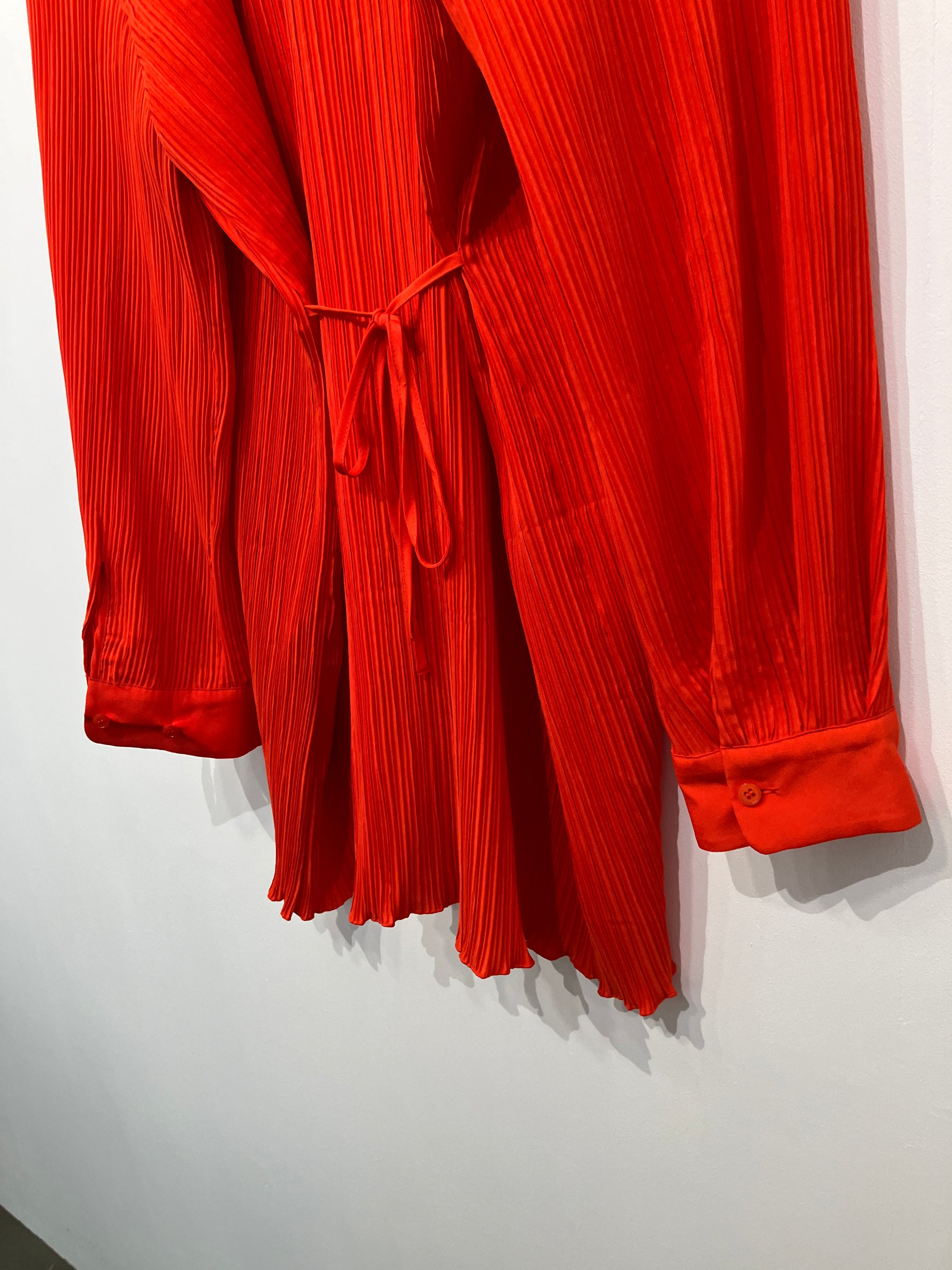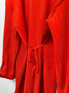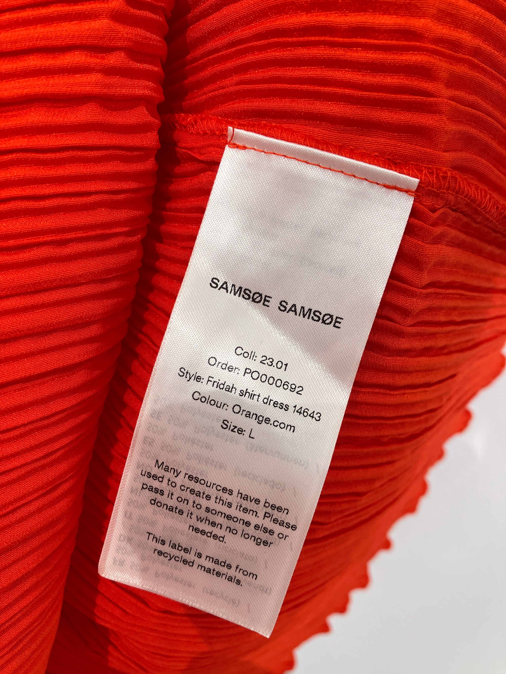 Flot farverig Samsøe & Samsøe kjole med plisseret overflade og bindebånd ved taljen.