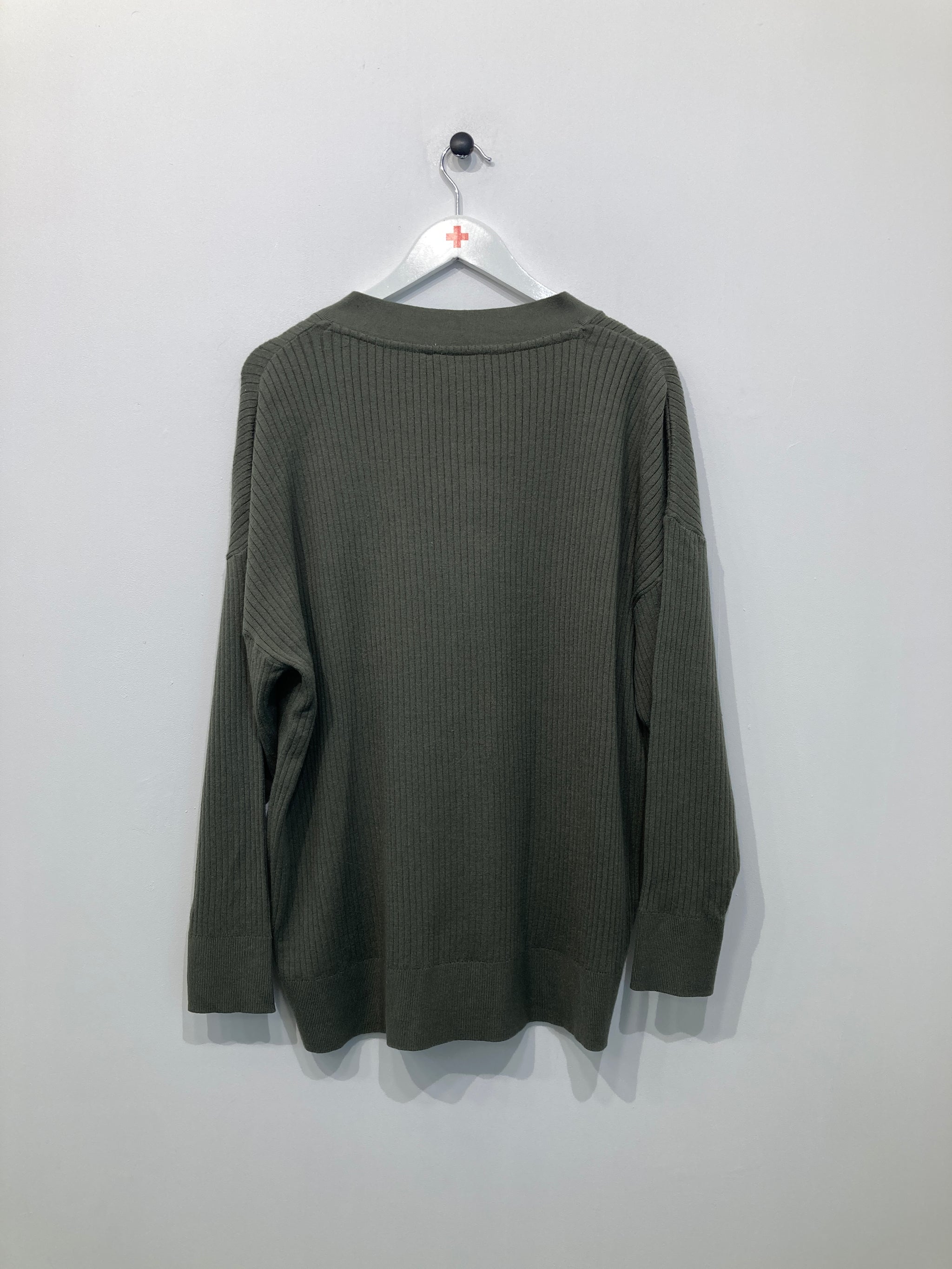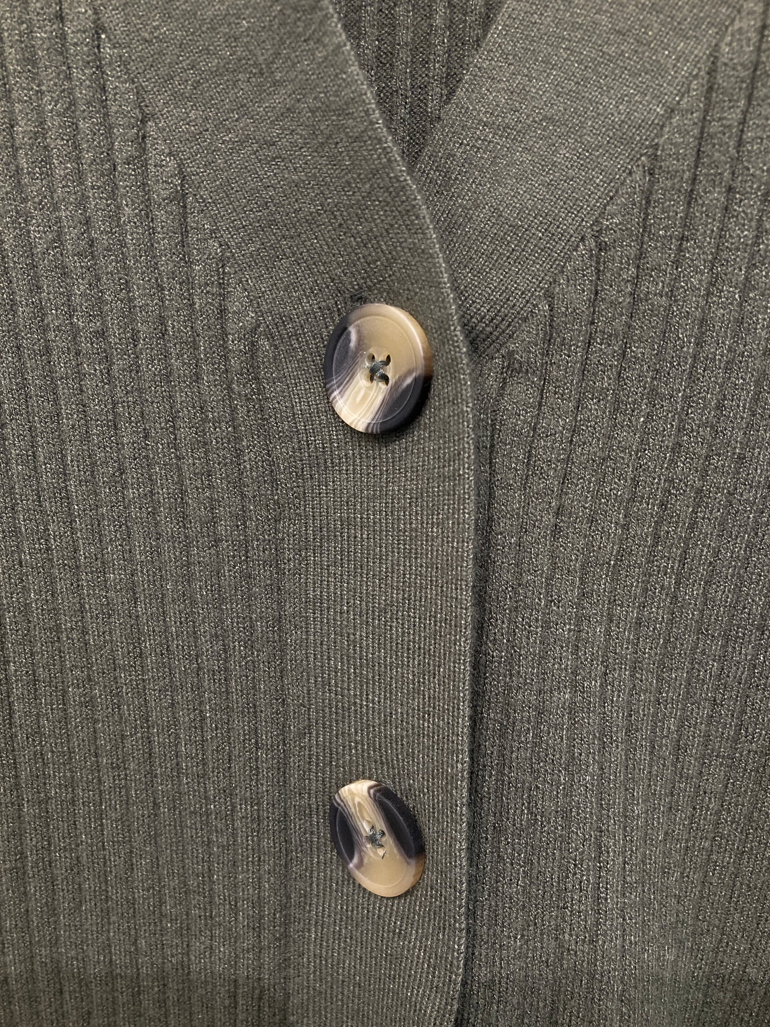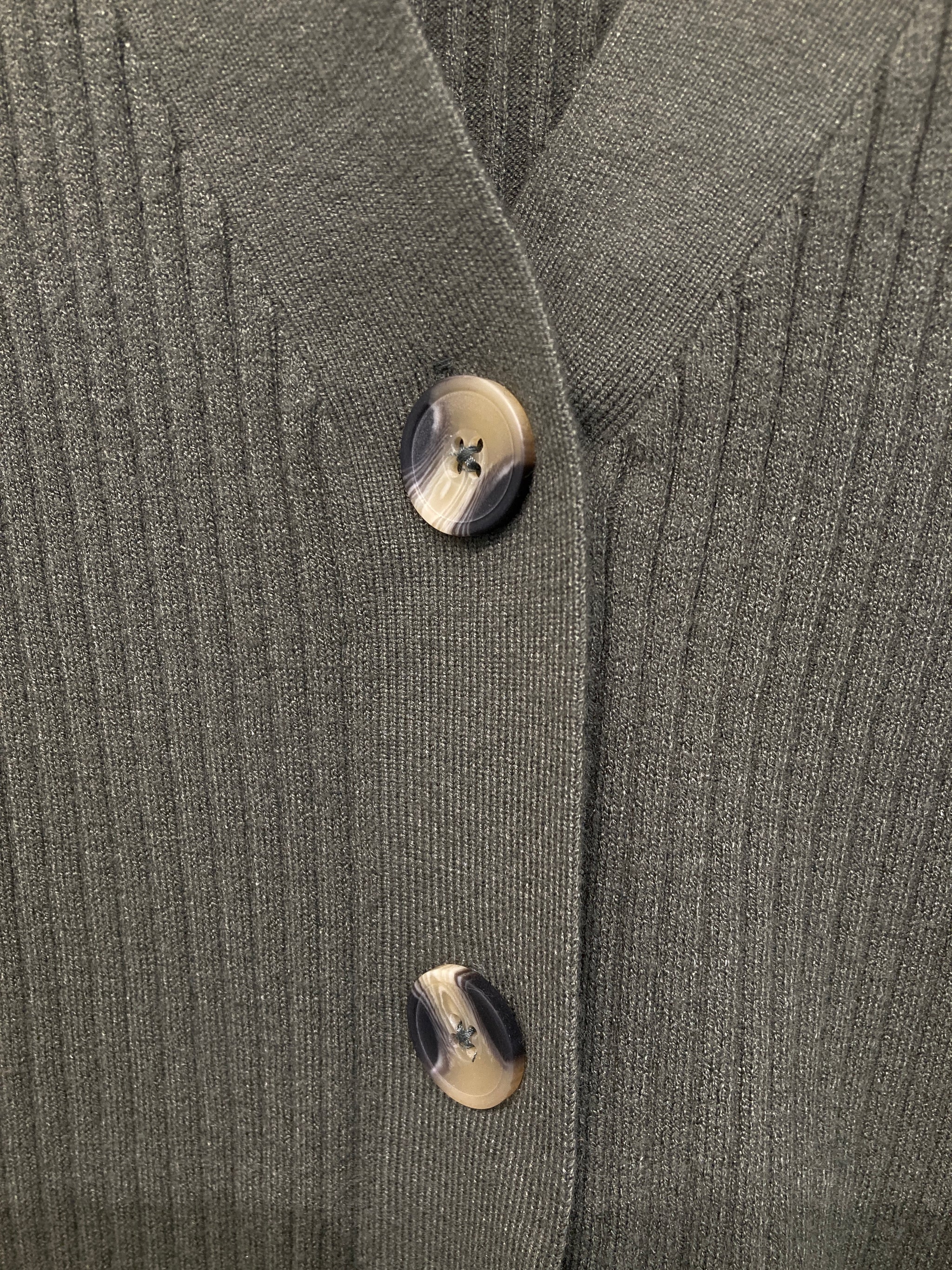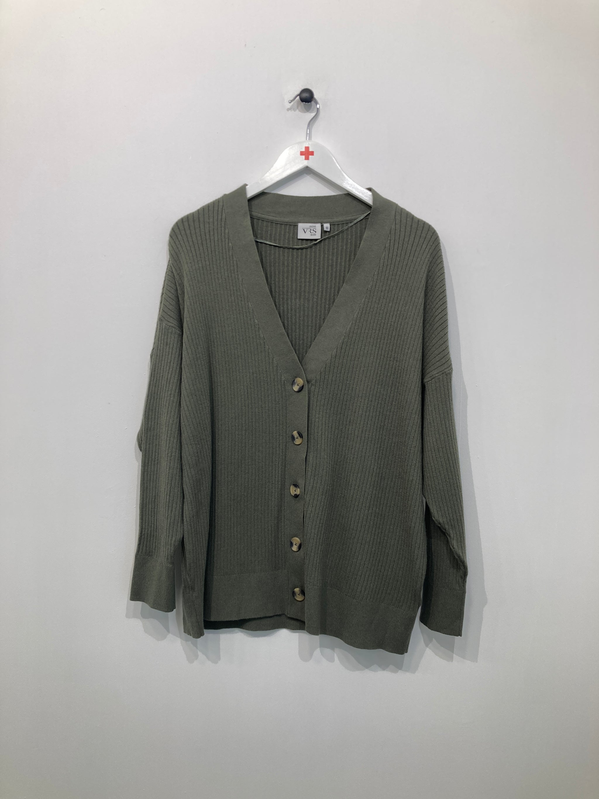 Strik cardigan. V udskæring, knaplukning og lange ærmer.