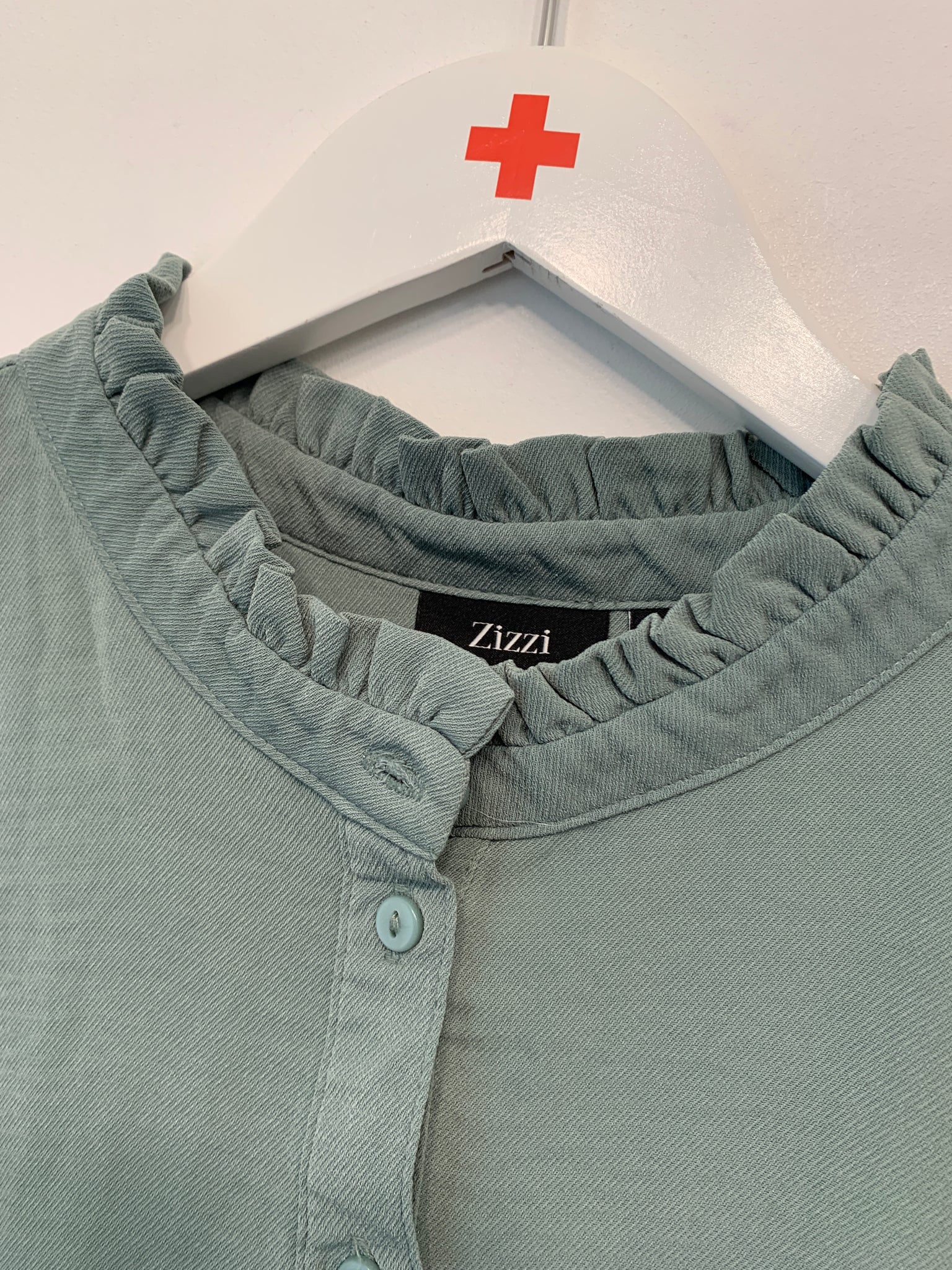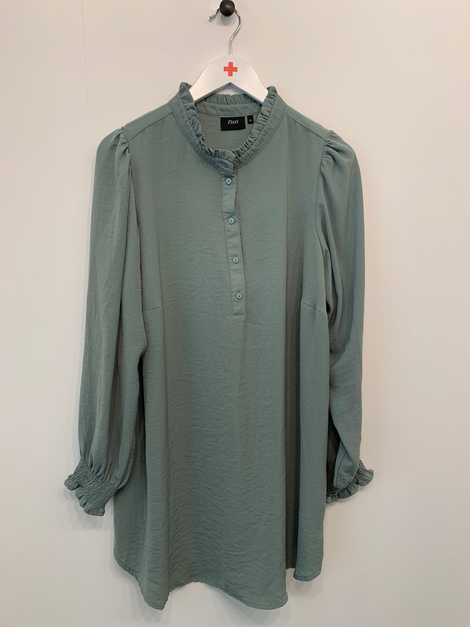 Elegant tunika fra Zizzi. Knaplukning foran og lange ærmer med elastiske manchetter.