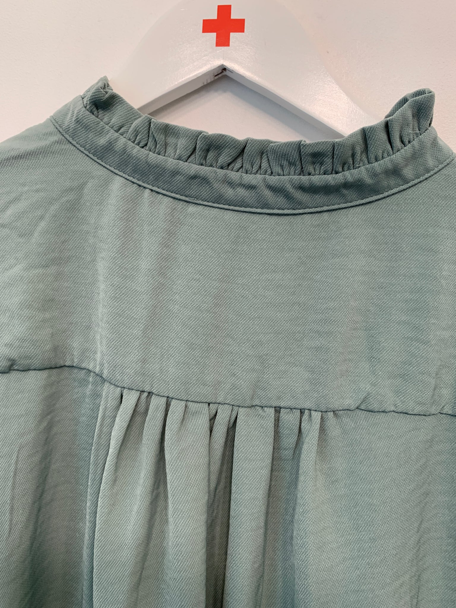 Da vi sælger brugt tøj, der er blevet vasket, kan vi ikke garantere, at størrelsesangivelsen ligger inden for en standardskala.