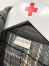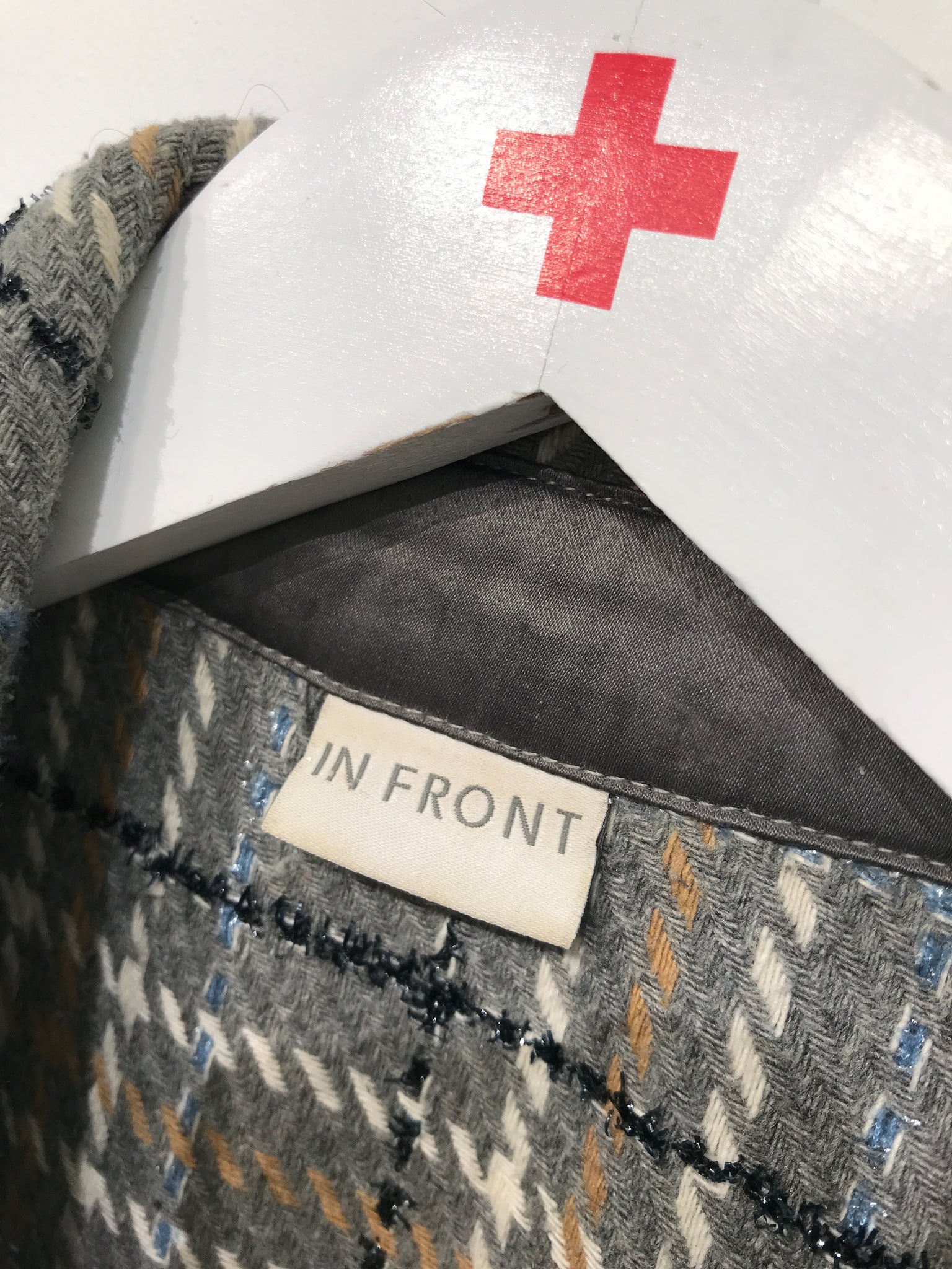 Da vi sælger brugt tøj, der er blevet vasket, kan vi ikke garantere, at størrelsesangivelsen ligger inden for en standardskala.