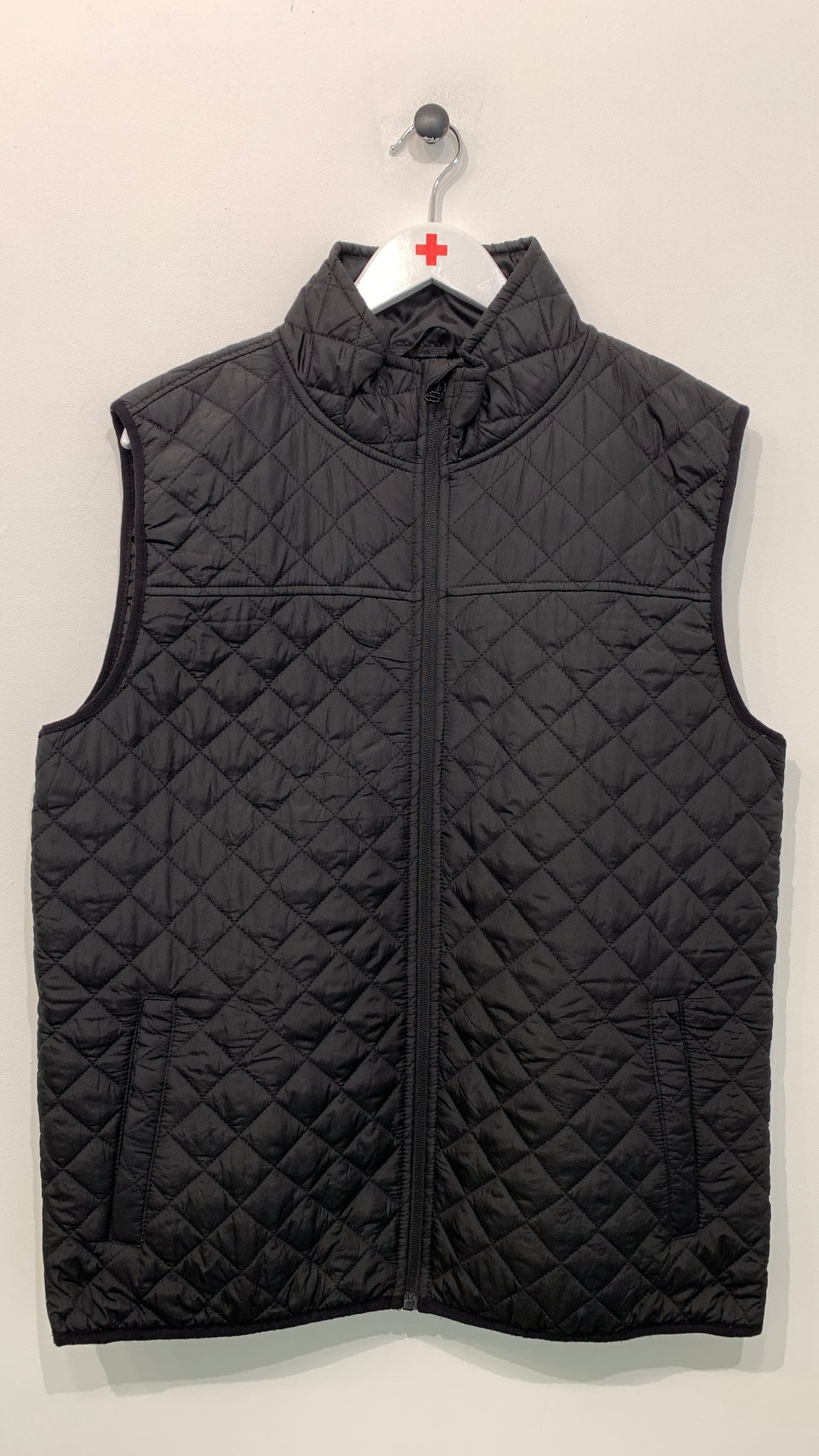 Vest med lynlåslukning og lommer på front.
