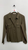 Langærmet bluse med knaplukning øverst på front, brystlommer.
