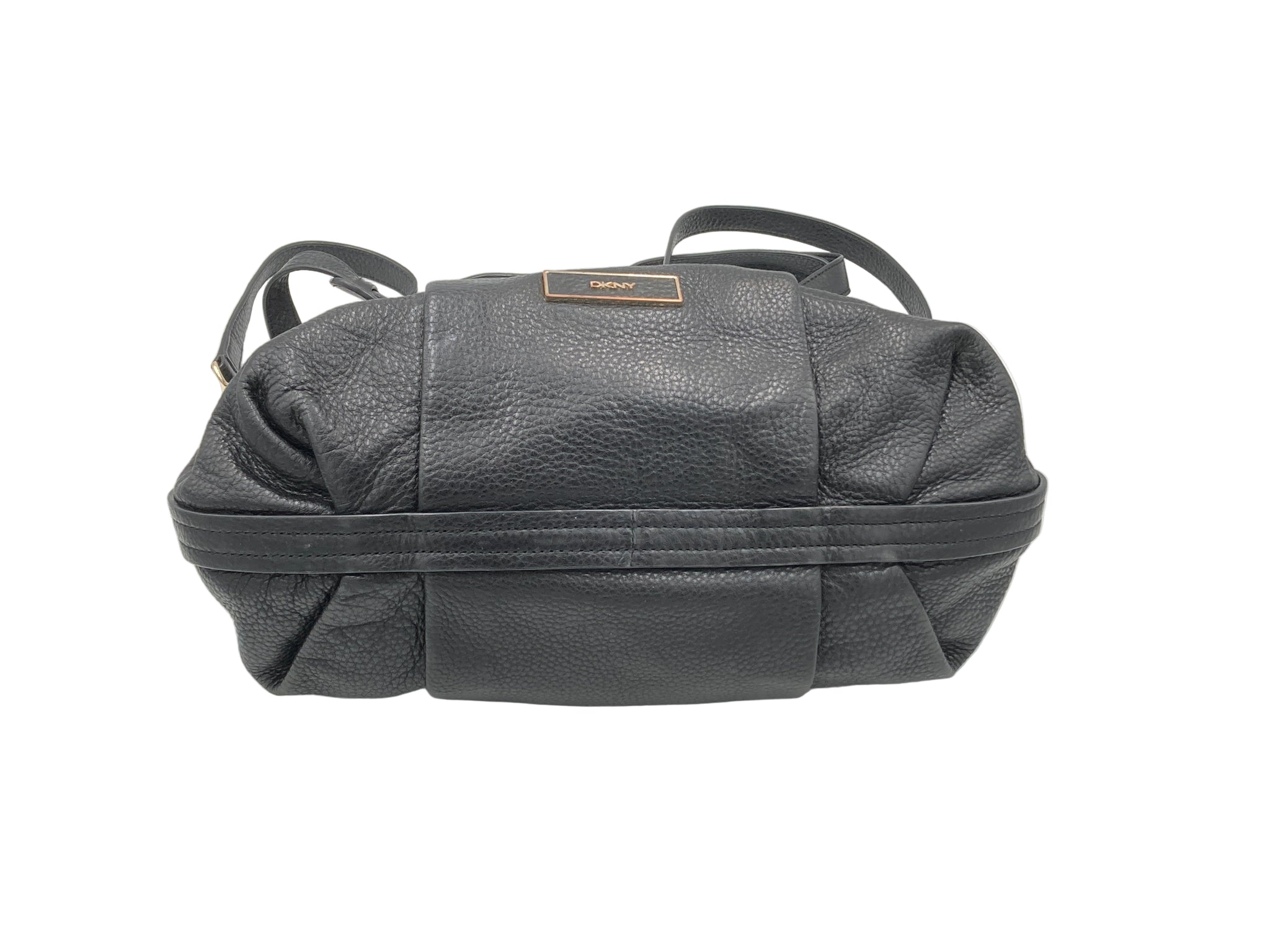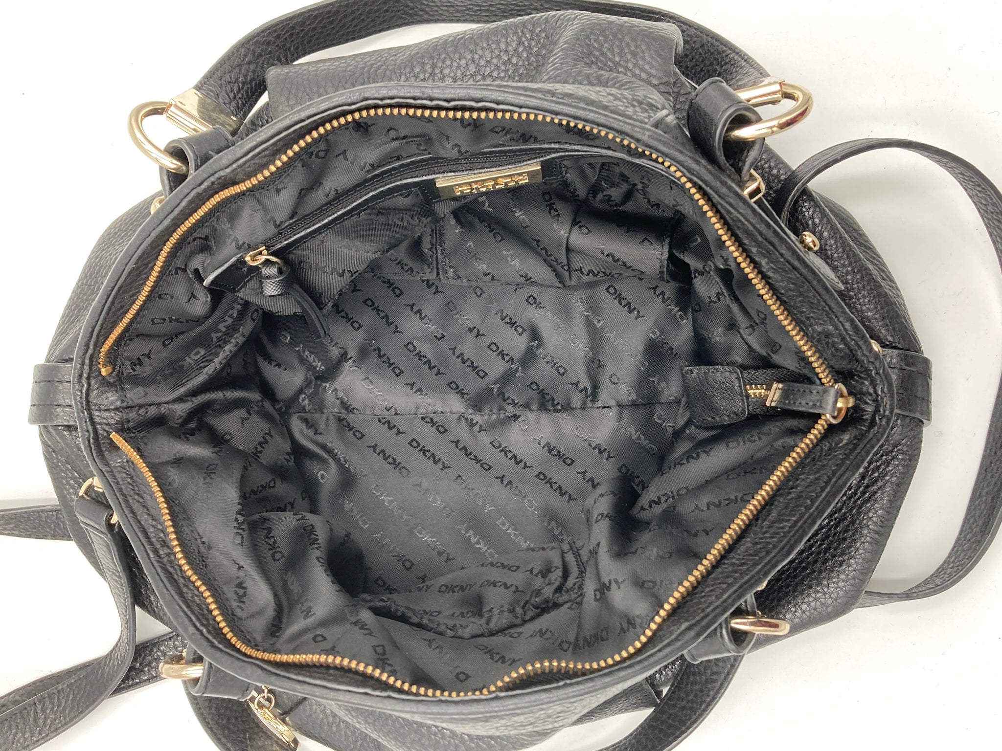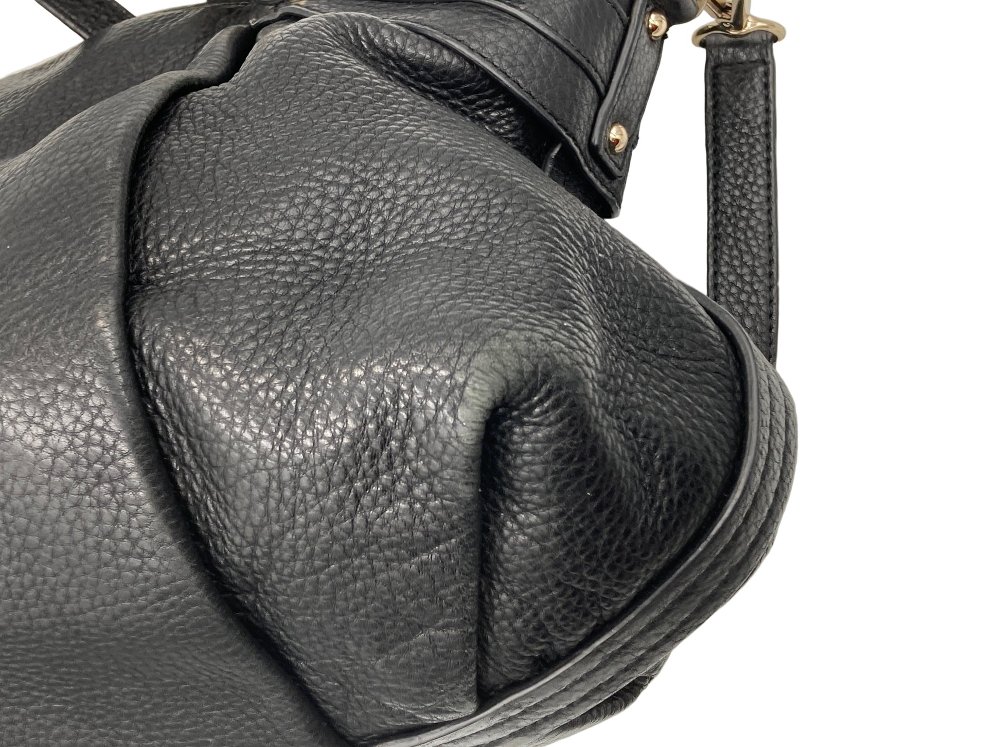 I blødt sort læder med justerbar og aftagelig skulderrem. Er i god stand med kun lidt slid i bunden i hjørnerne (se billede)