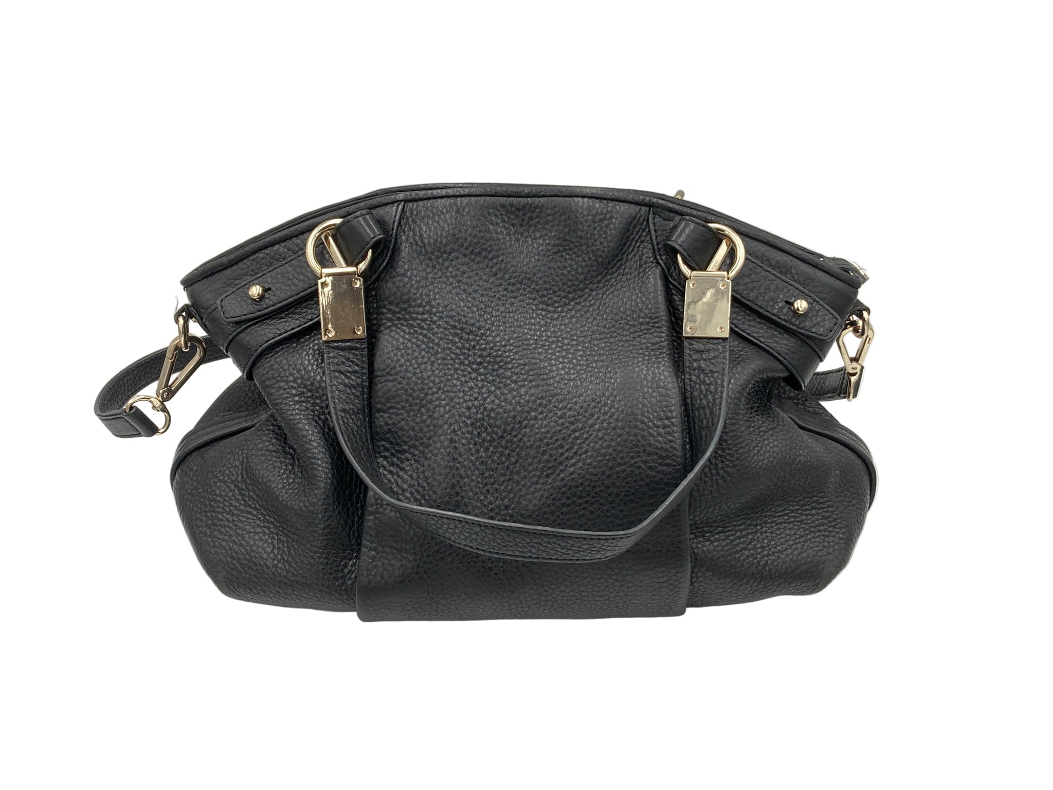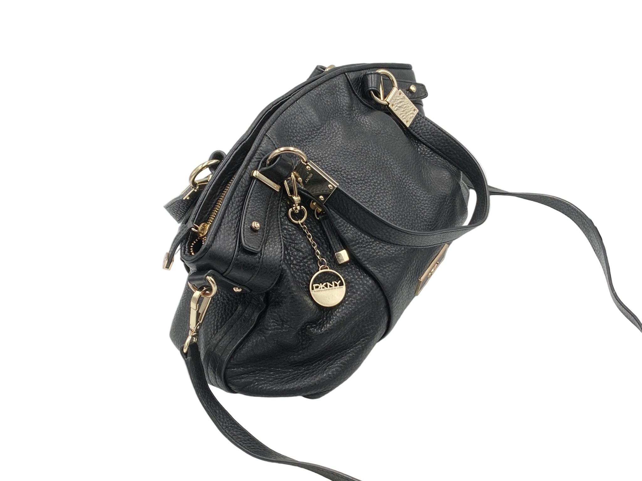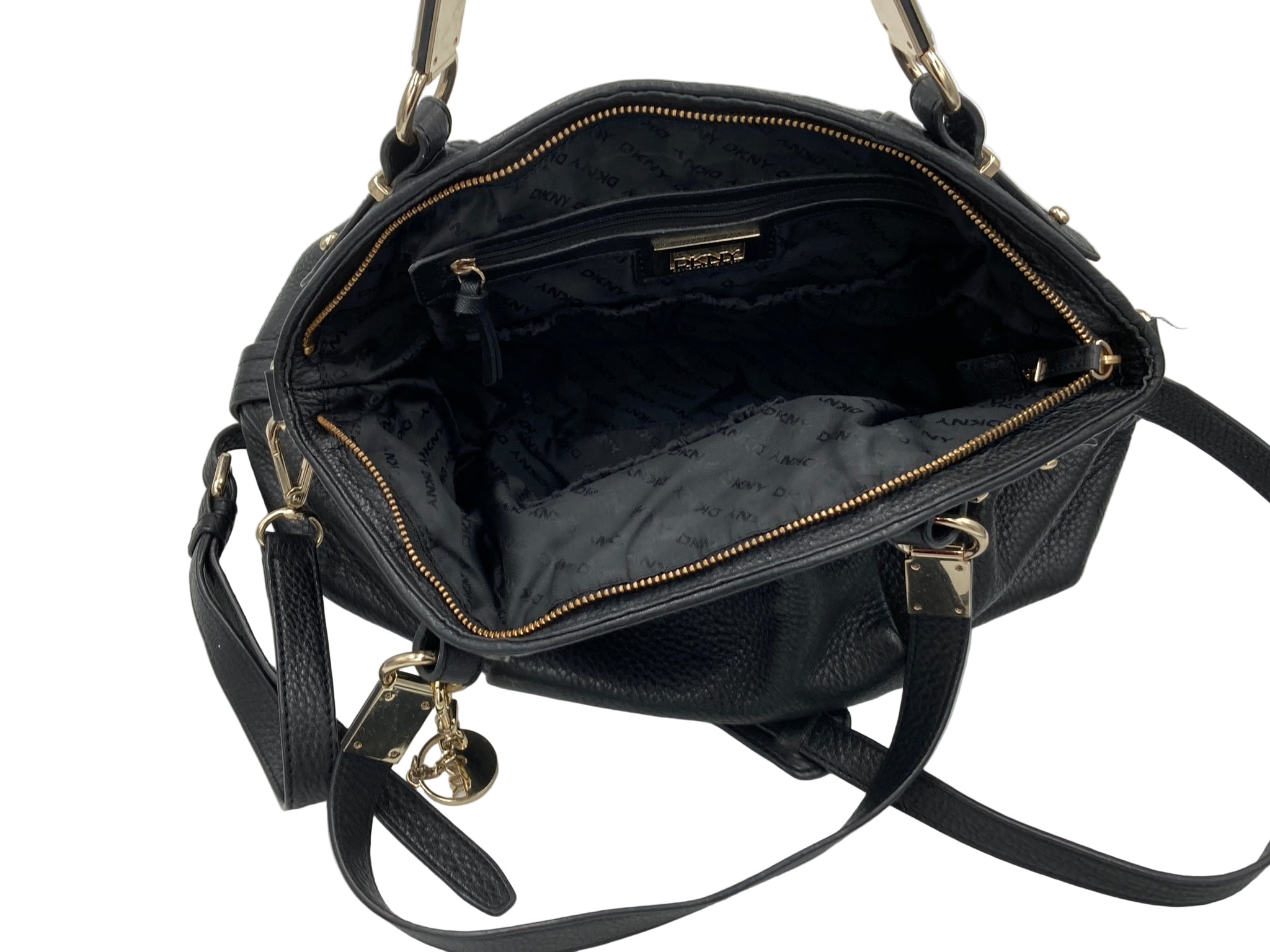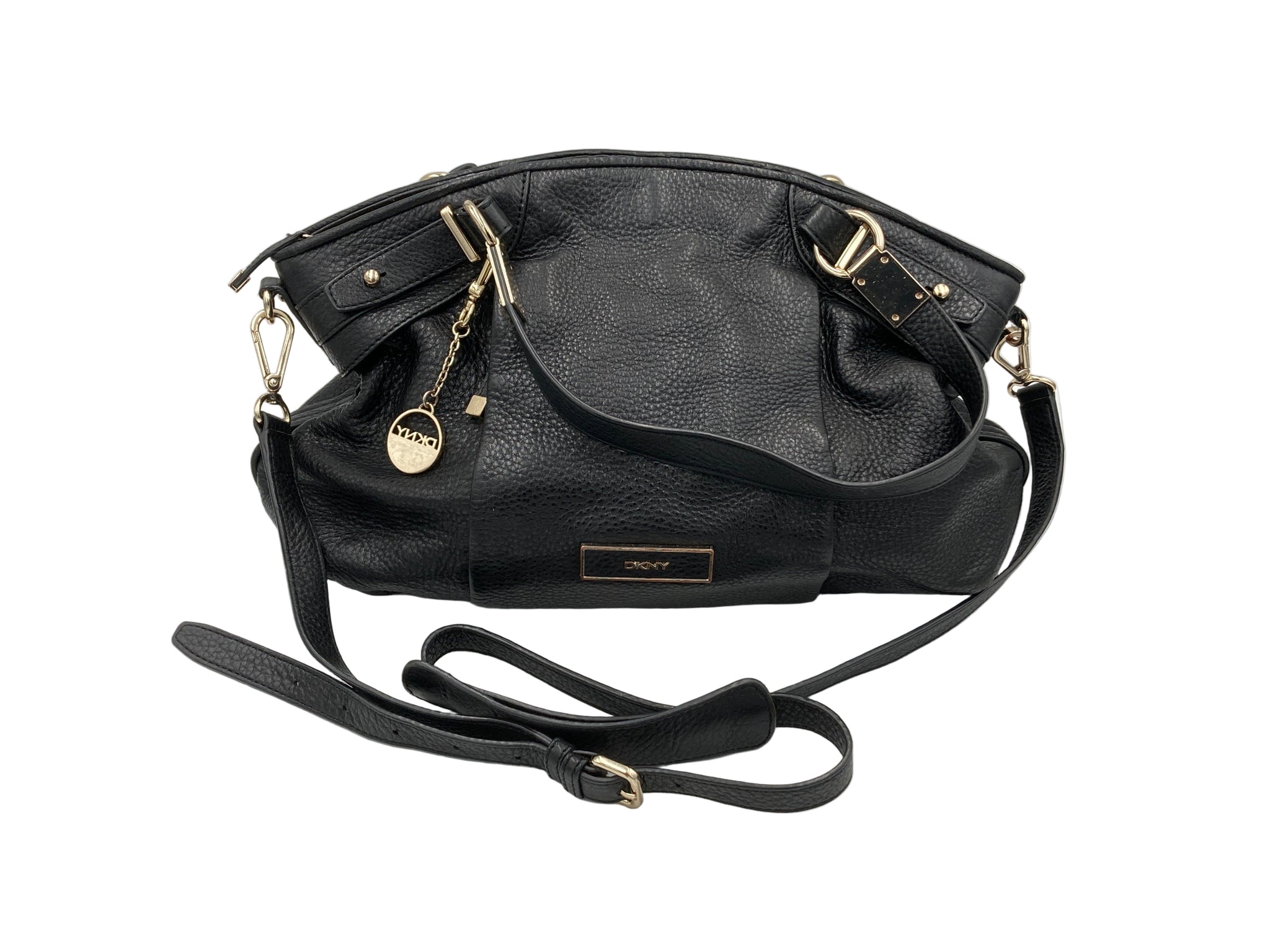 I blødt sort læder med justerbar og aftagelig skulderrem. Er i god stand med kun lidt slid i bunden i hjørnerne (se billede)