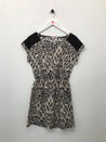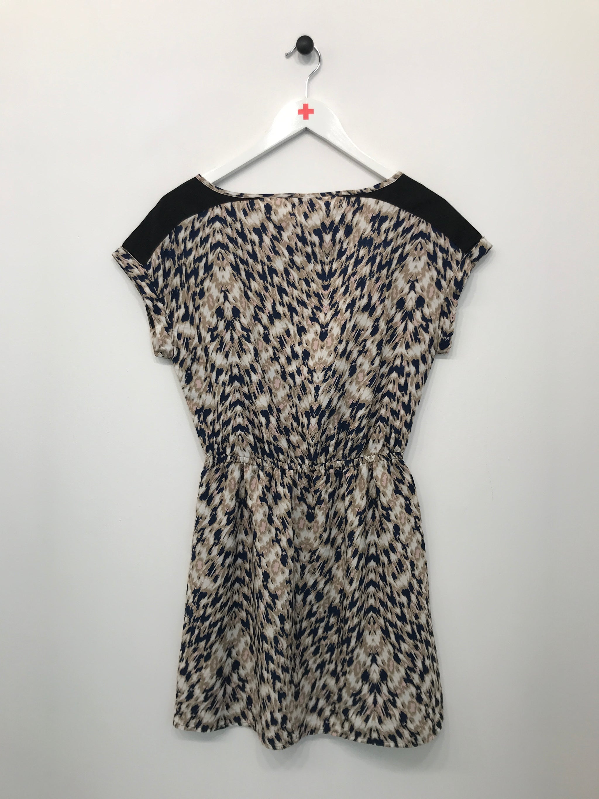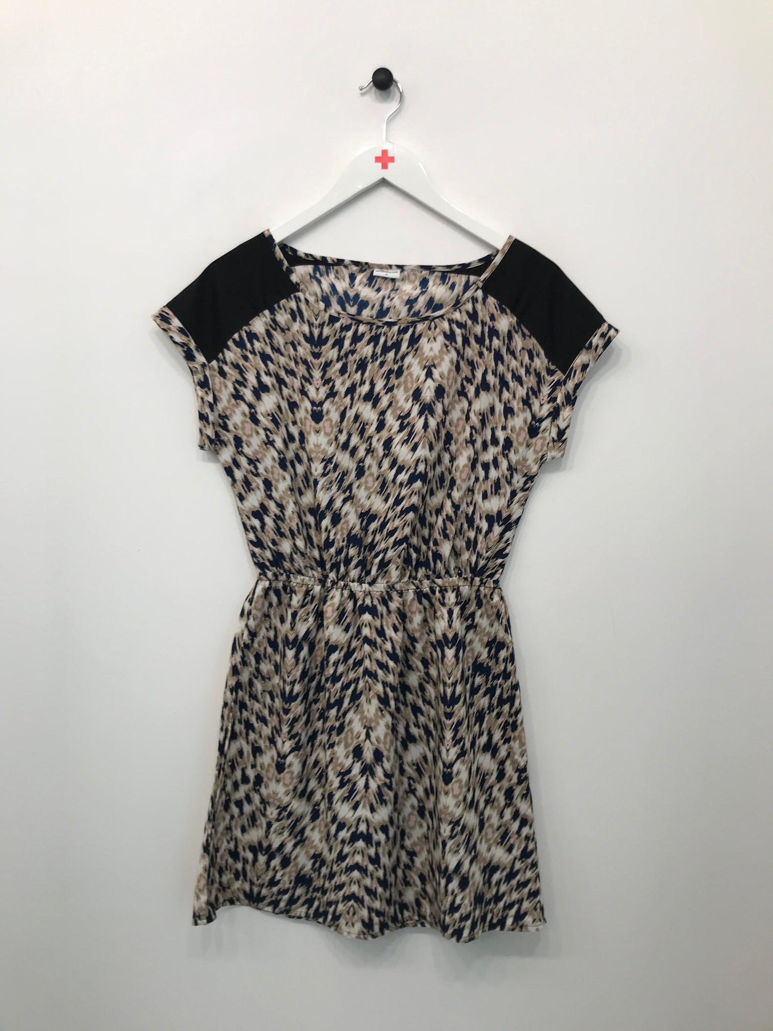 Kort kjole med korte ærmer, rund hals og elastik i taljen.