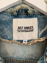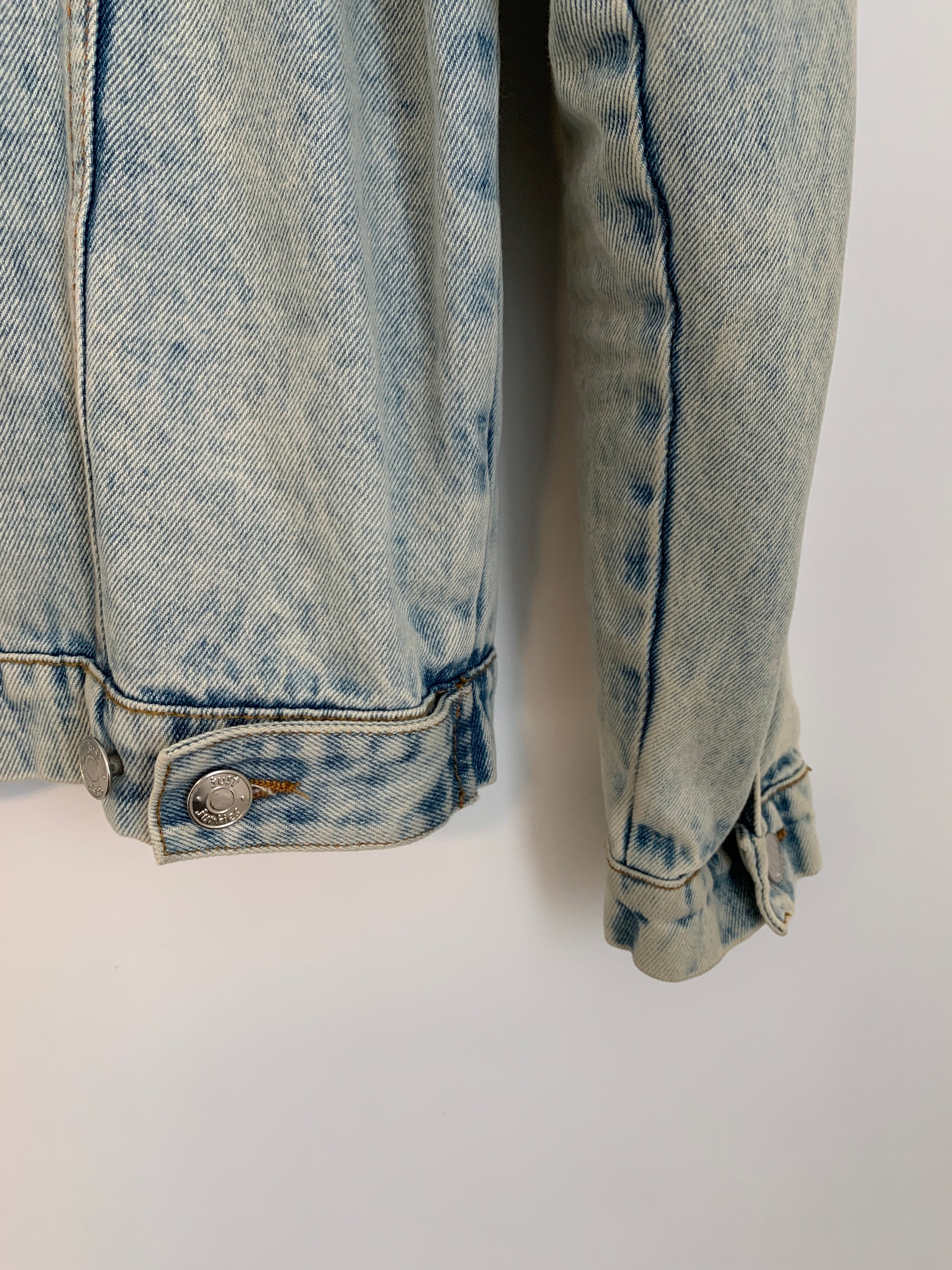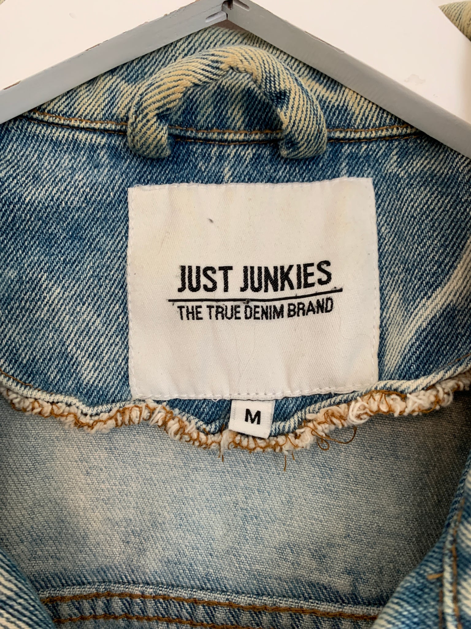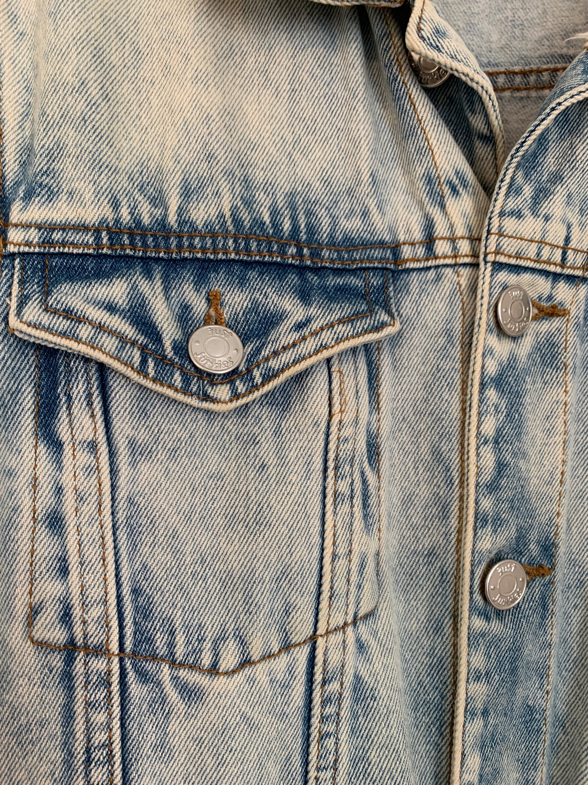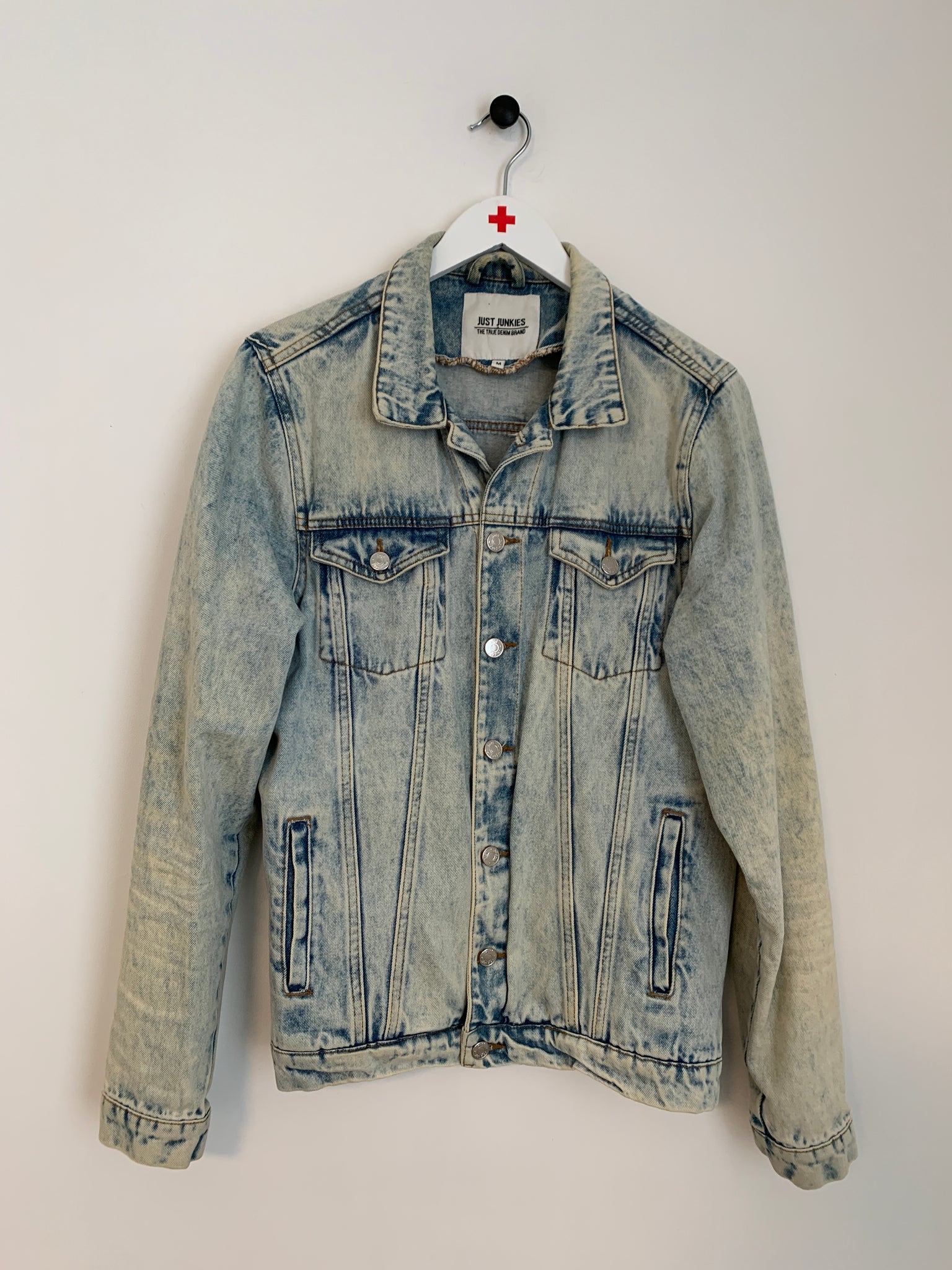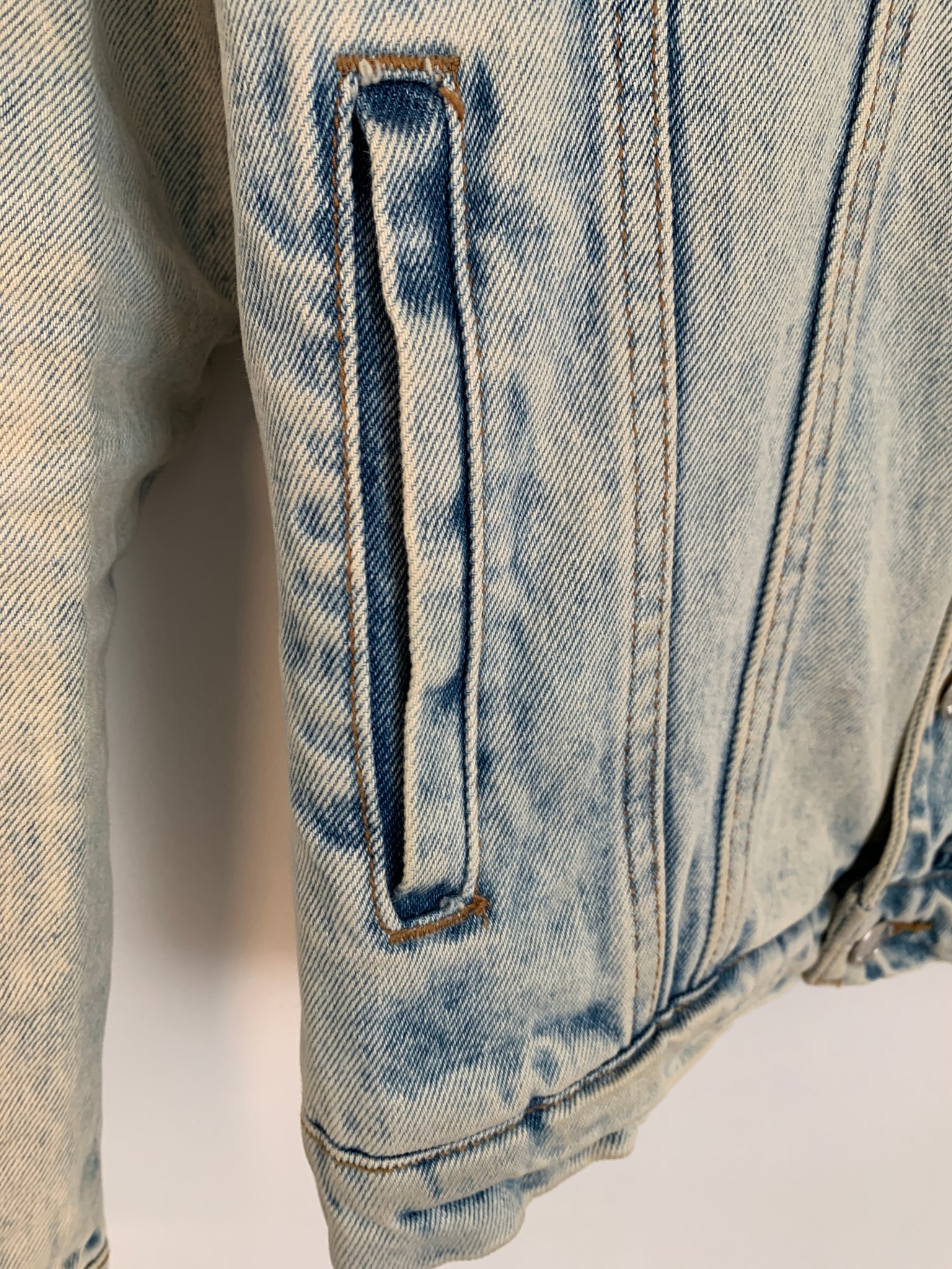 Flot denim jakke med metal kanpper op af midten og to set af lommer.