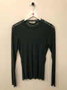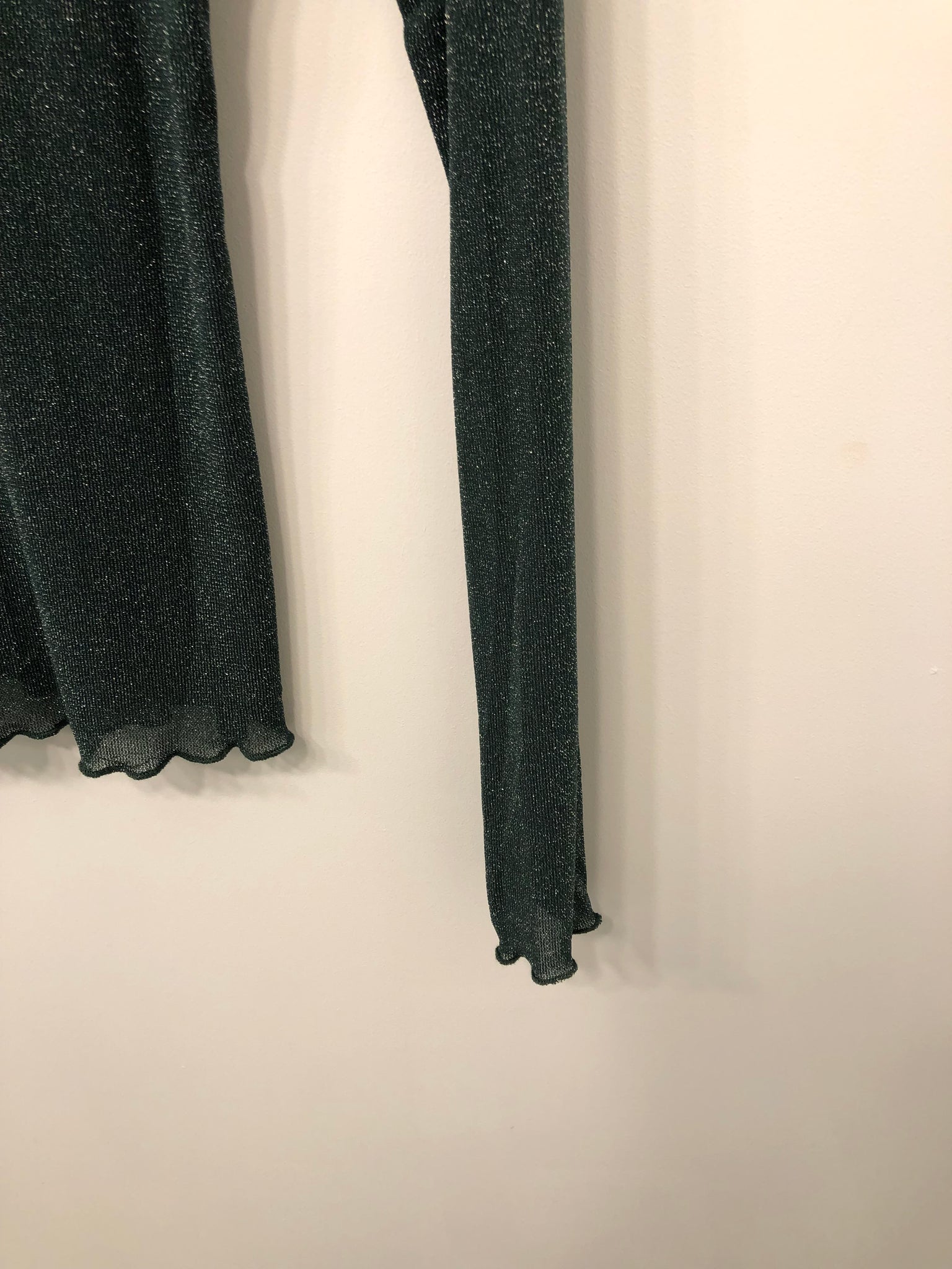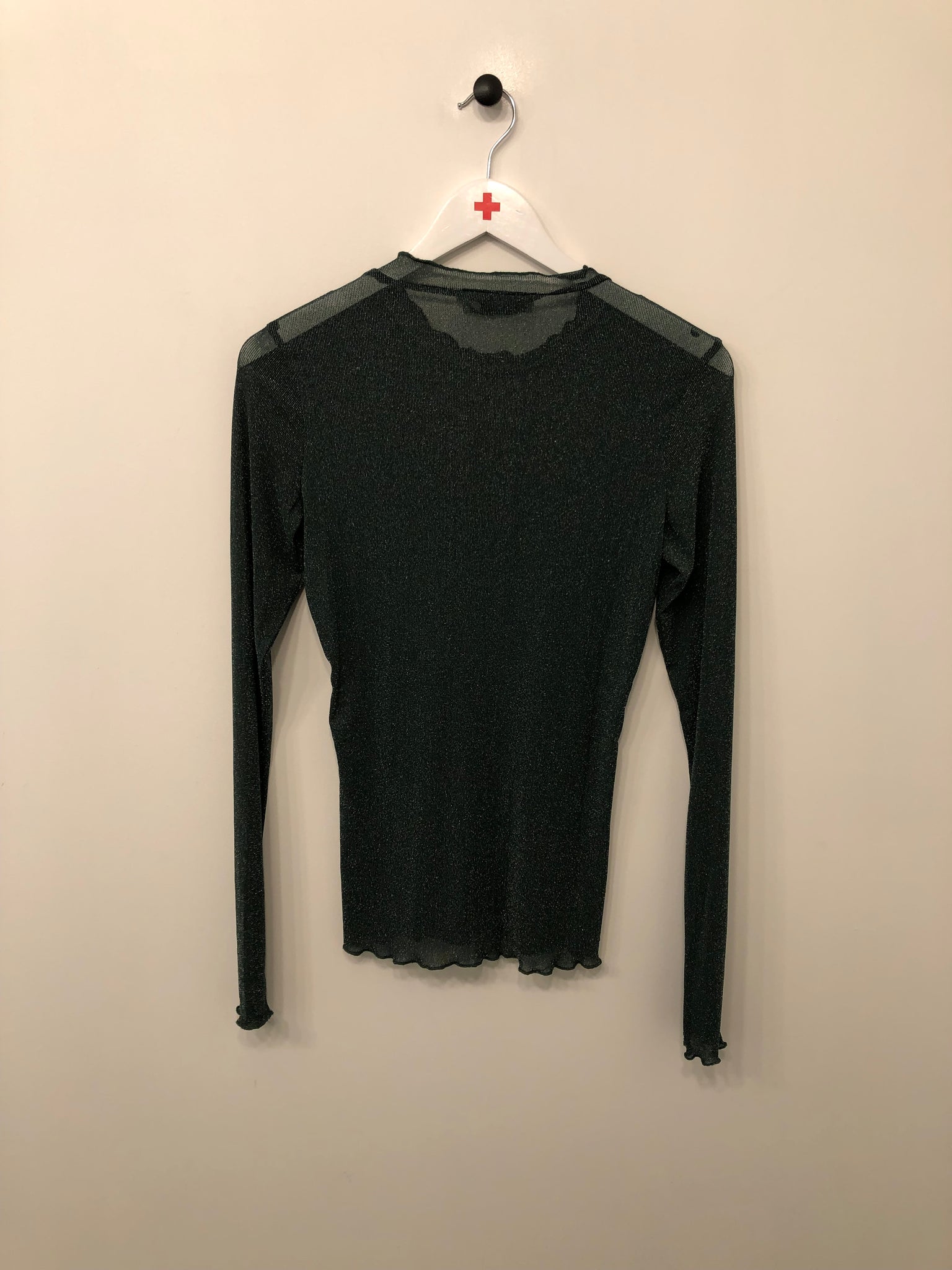 Flot, tætsiddende bluse med lange ærmer.