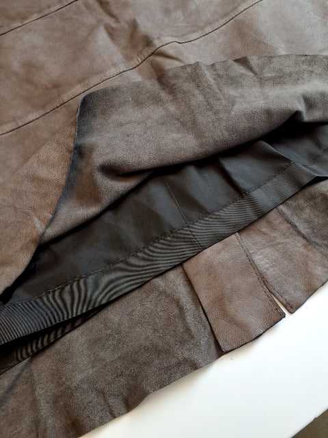 O477 Nederdelen er lavet af blødt læder med synlige sømme og en simpel silhuet.