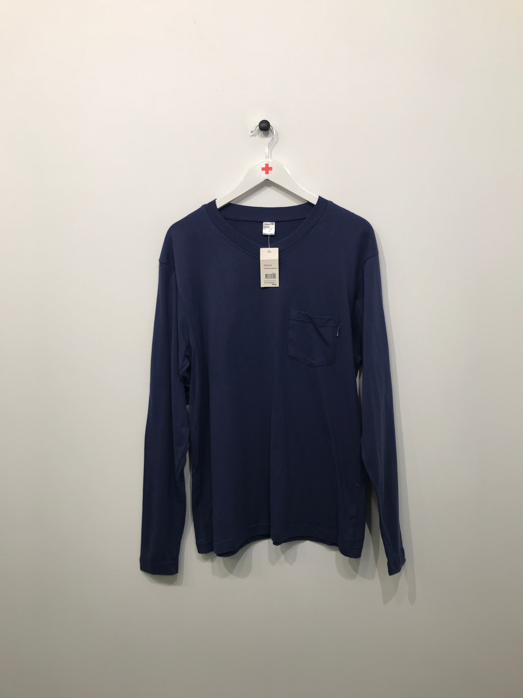 Strik bluse med rund halsudskæring, brystlomme og lange ærmer.