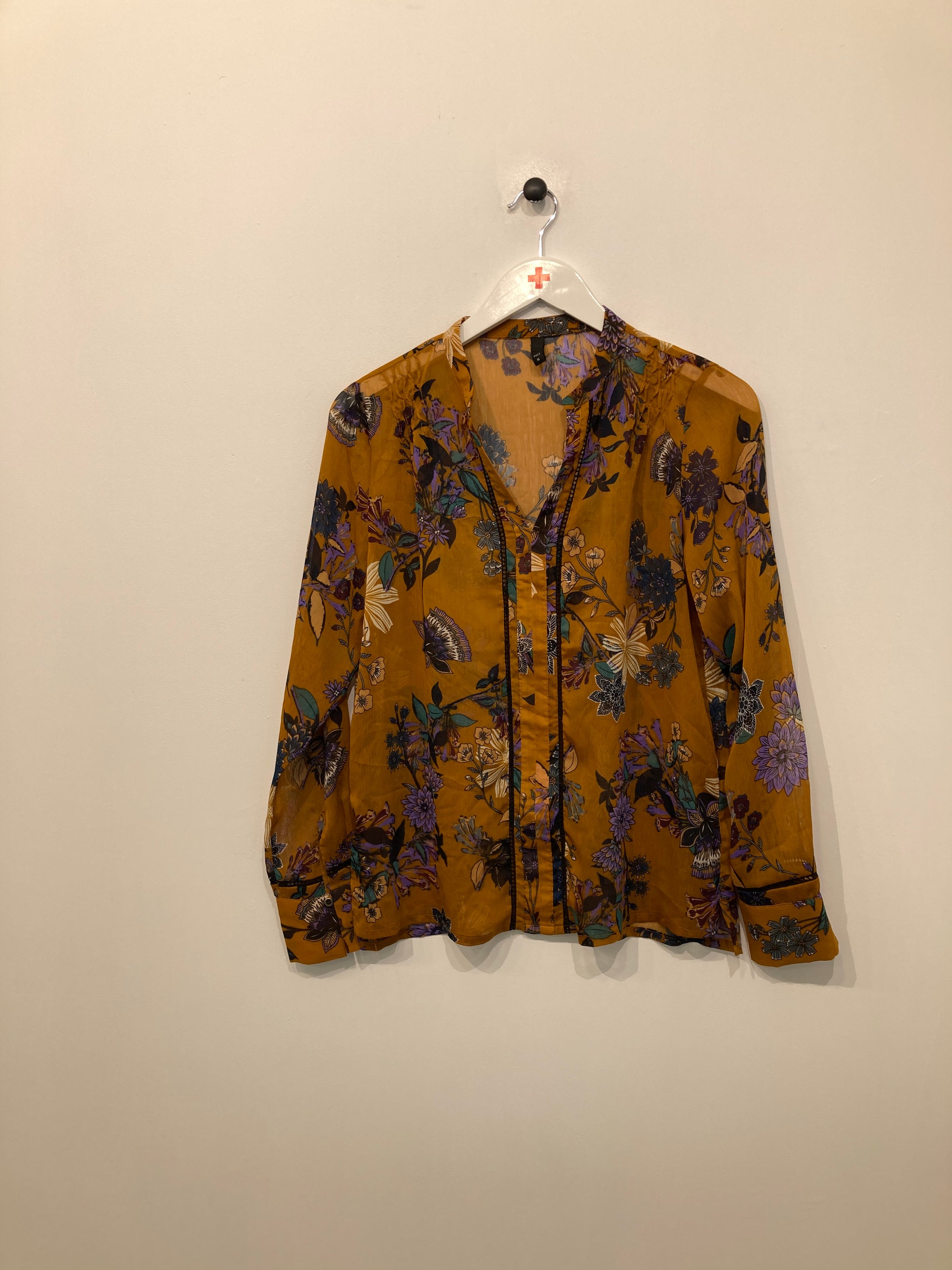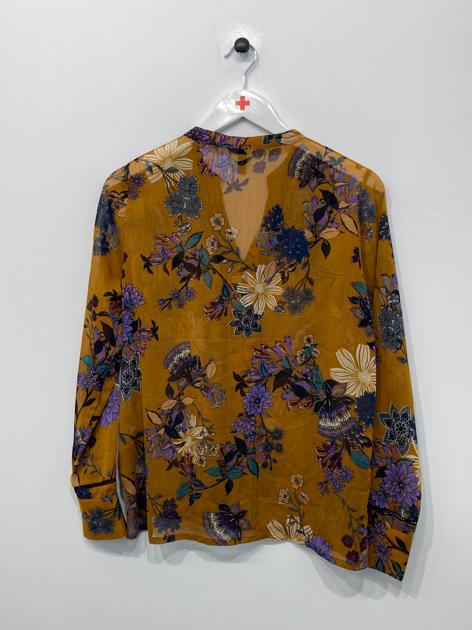 Fin langærmet bluse med v-hals. Mangler vaskemærke.