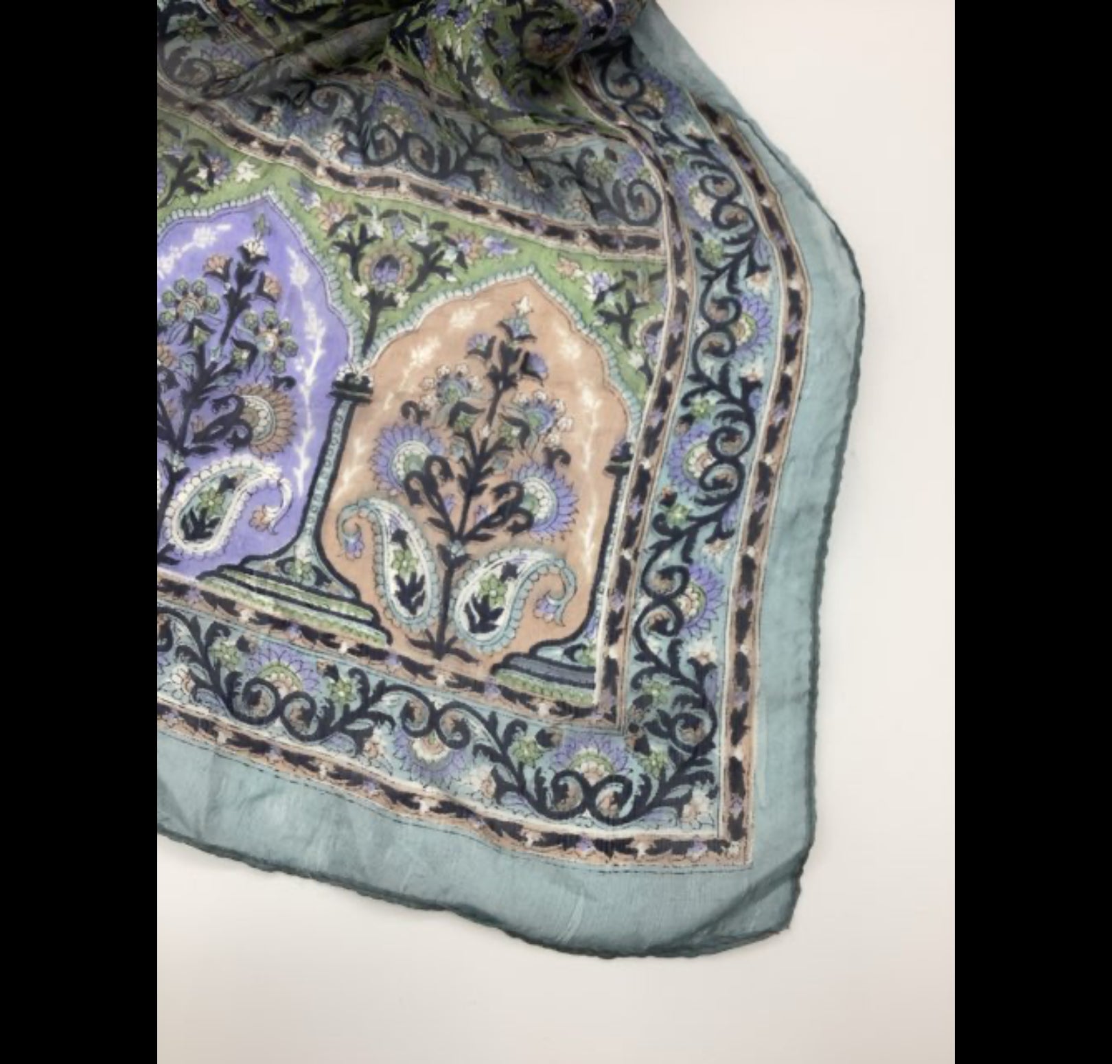 H356 Sjalet er let, luftigt og prydet med blomstermønstre. 100% silke Mål: 175 x 45 cm