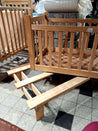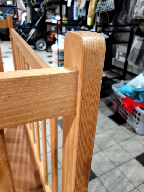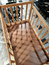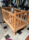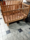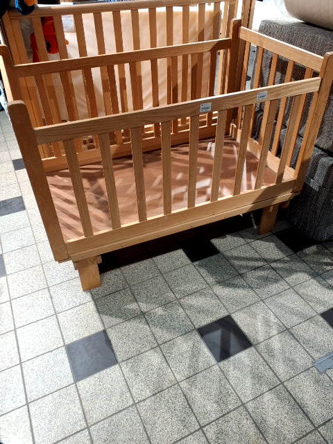 Retro-tremmeseng. Den har fast bund. Selve sovedelen kan løftes af understellet.