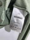 Da vi sælger brugt tøj, der er blevet vasket, kan vi ikke garantere, at størrelsesangivelsen ligger inden for en standardskala.